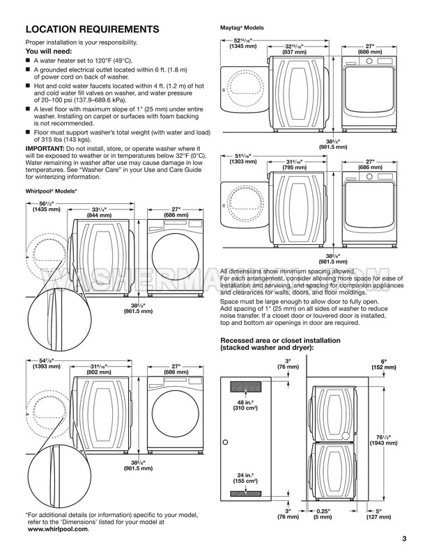 Amana NFW5800HW Installation Instructions
