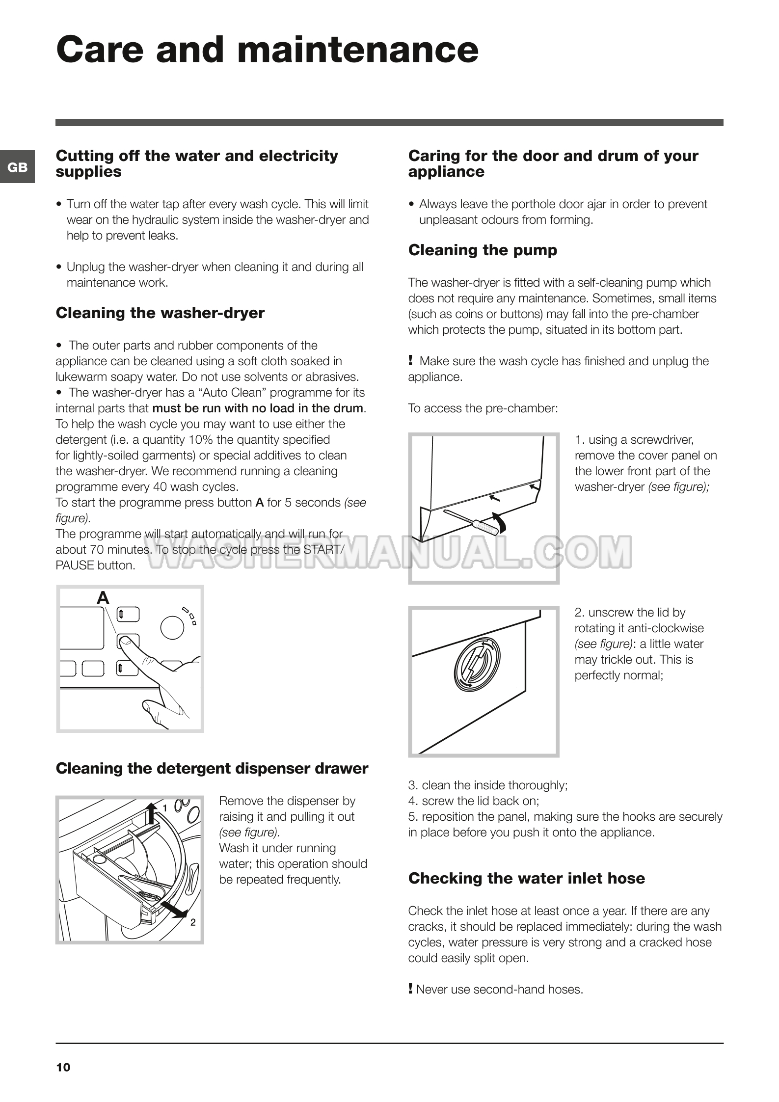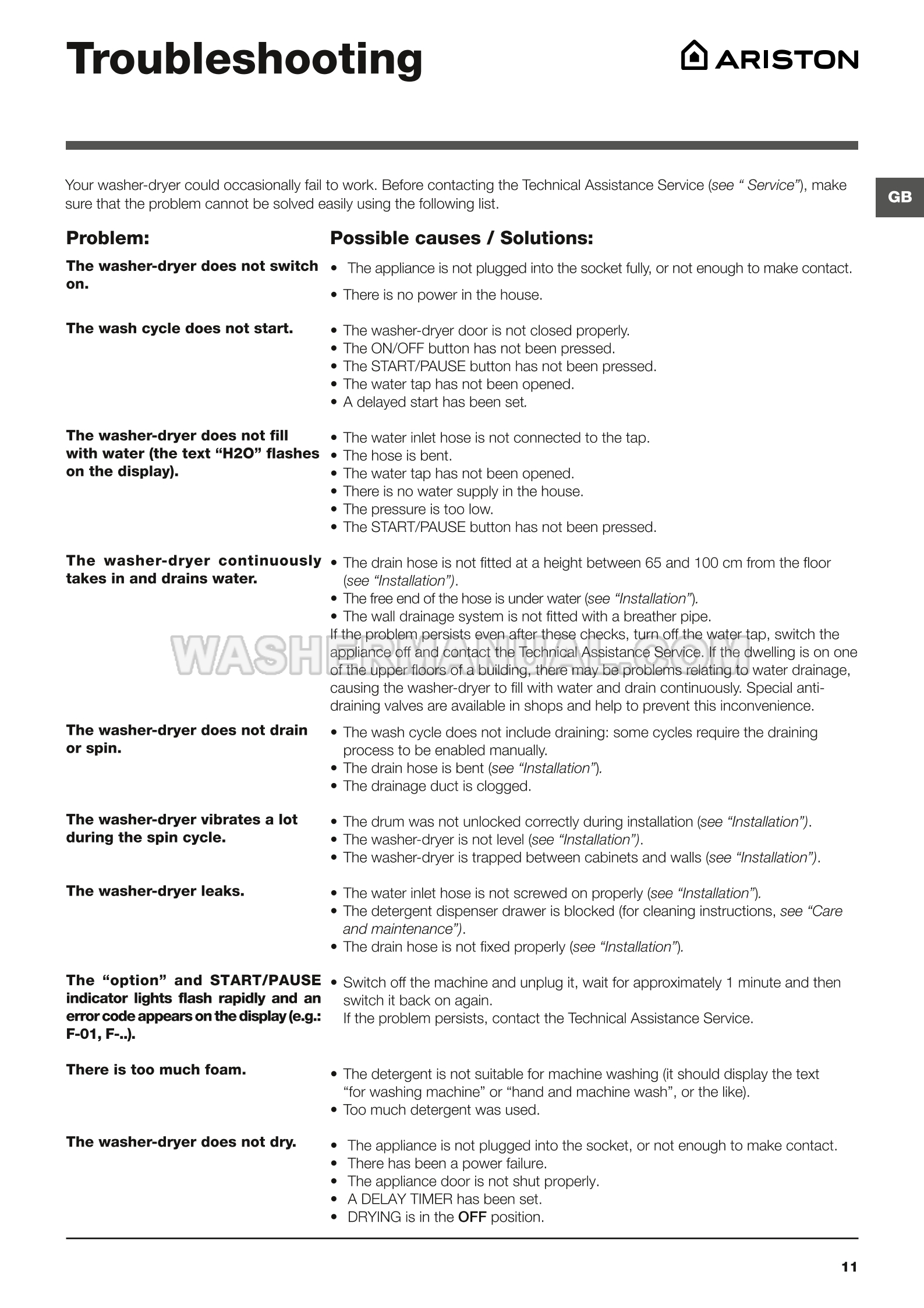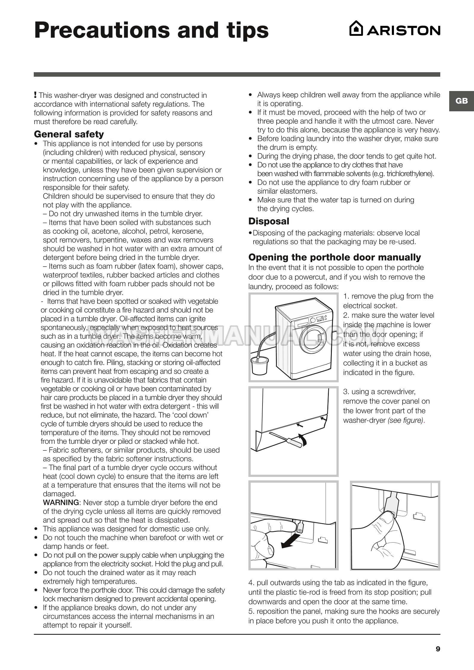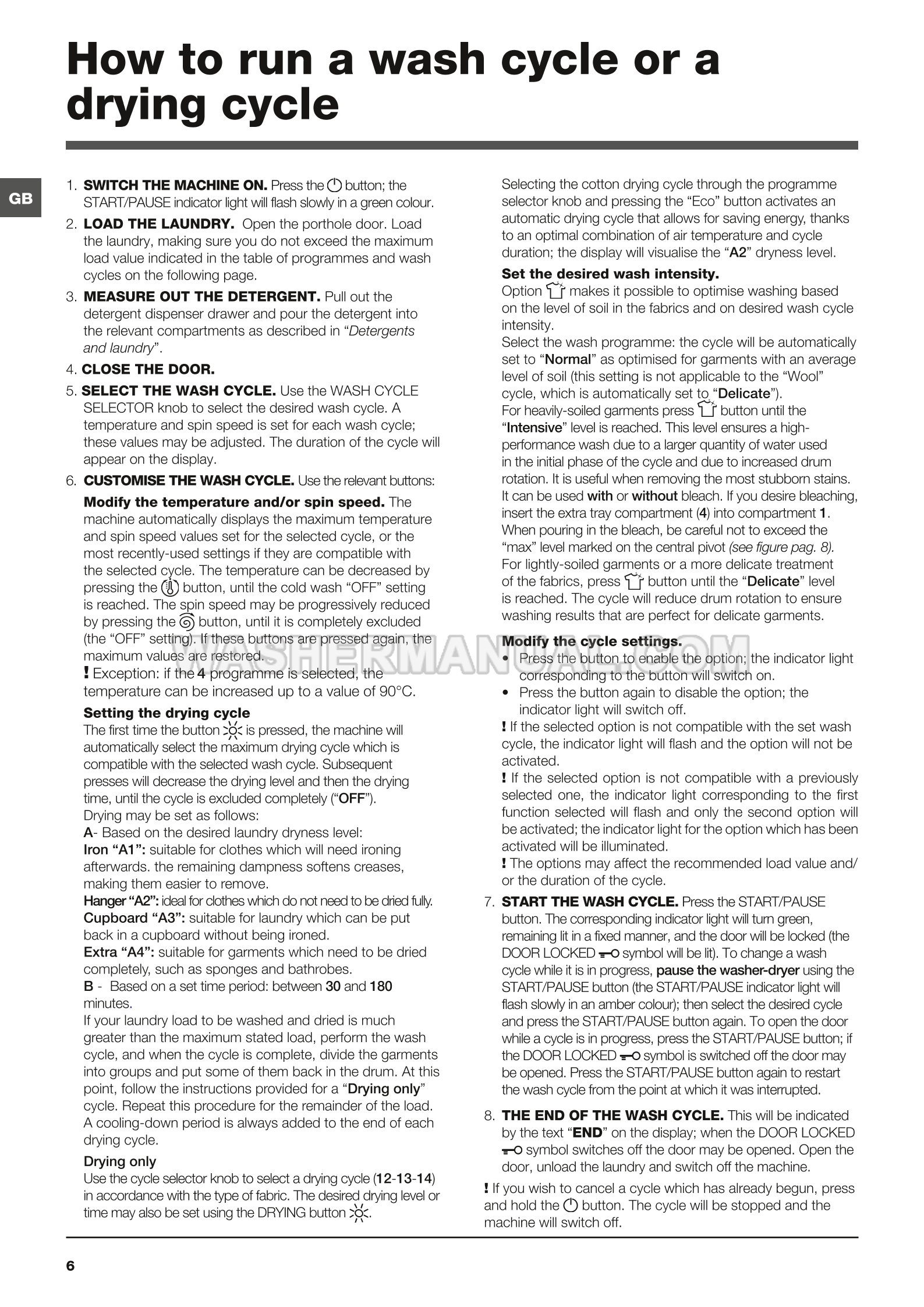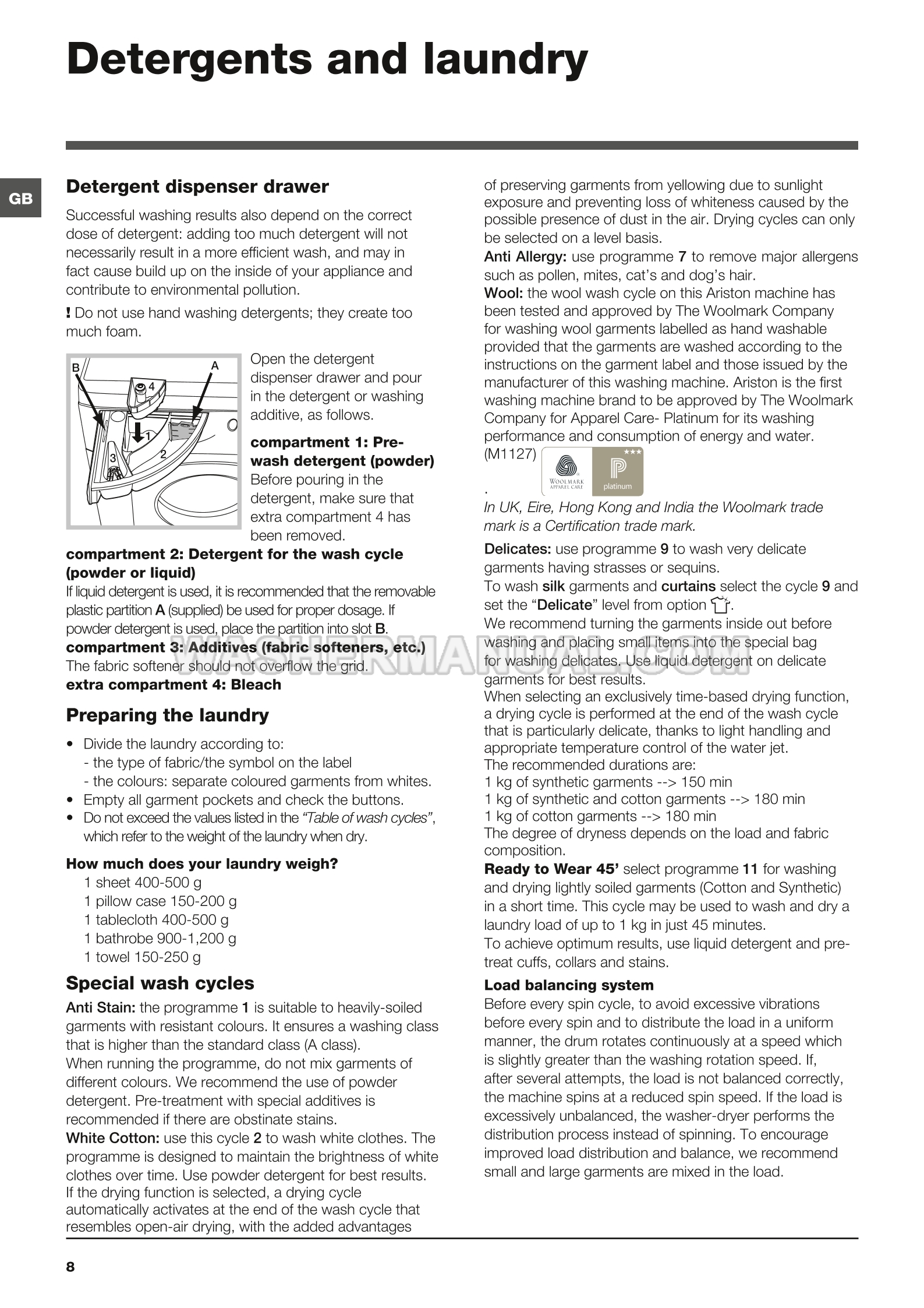 Instructions for use for Ariston WDG8629B AUS advanced 8kg washer and 5.5kg dryer combination unit offering 1200 RPM spin speed with automatic load balancing, delay timer, and specialized programs for gentle and powerful cleaning laundry machine on 12 pages.