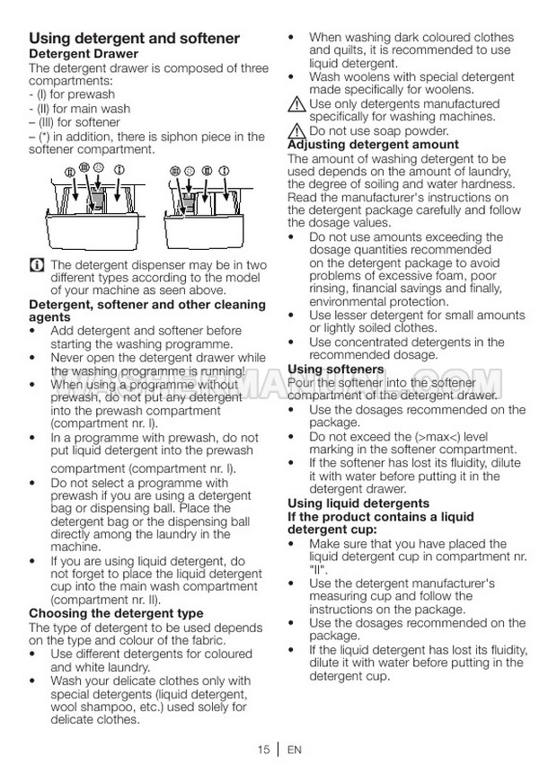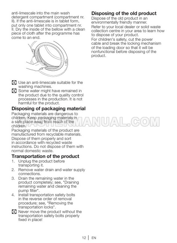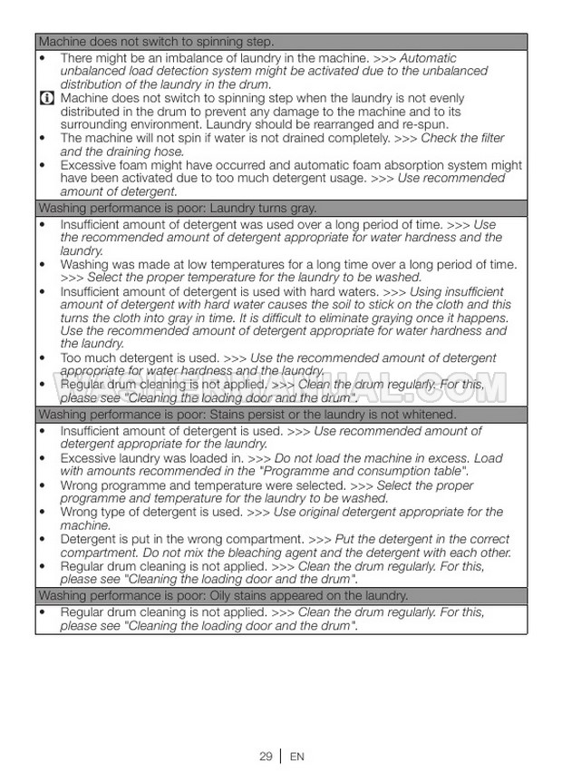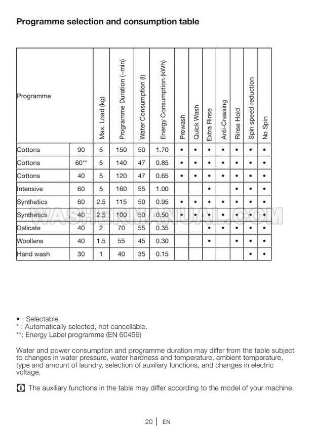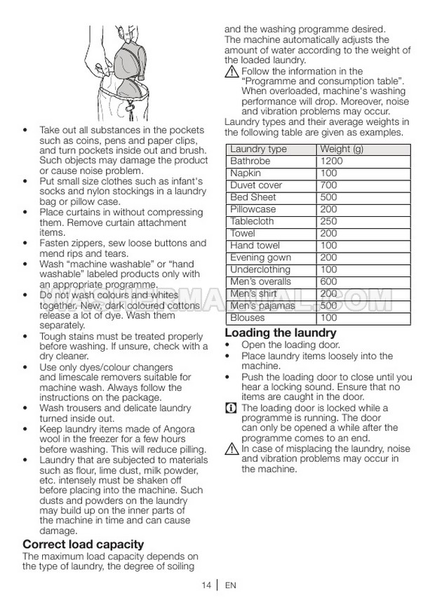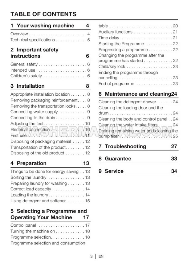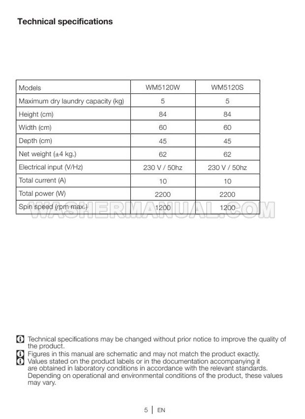 Installation & operating instructions for Beko WM5120W 5kg laundry machine with front load on 36 pages.