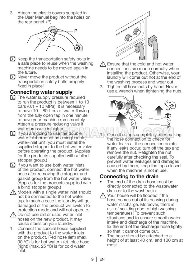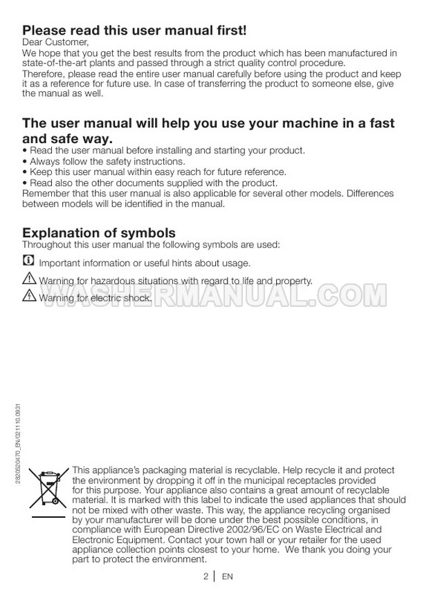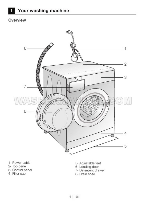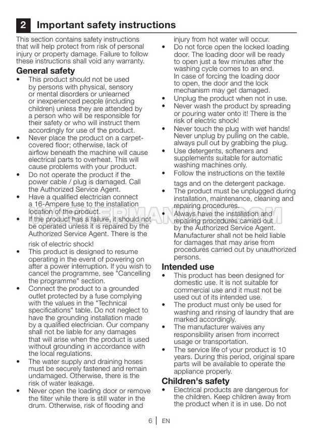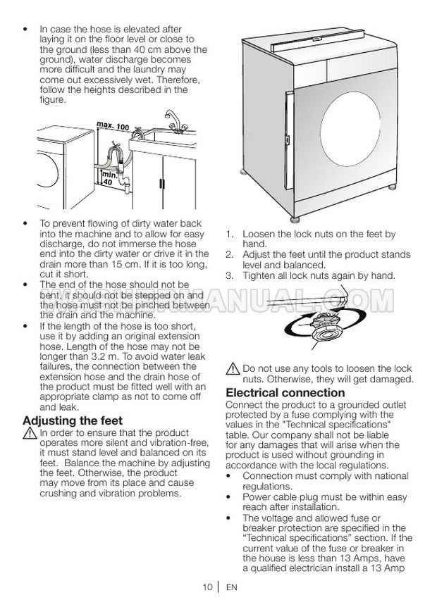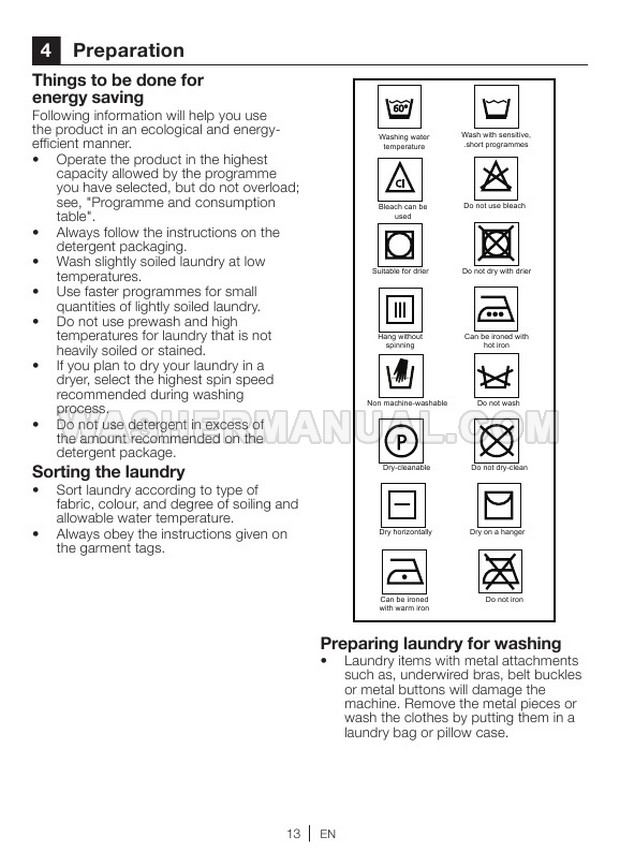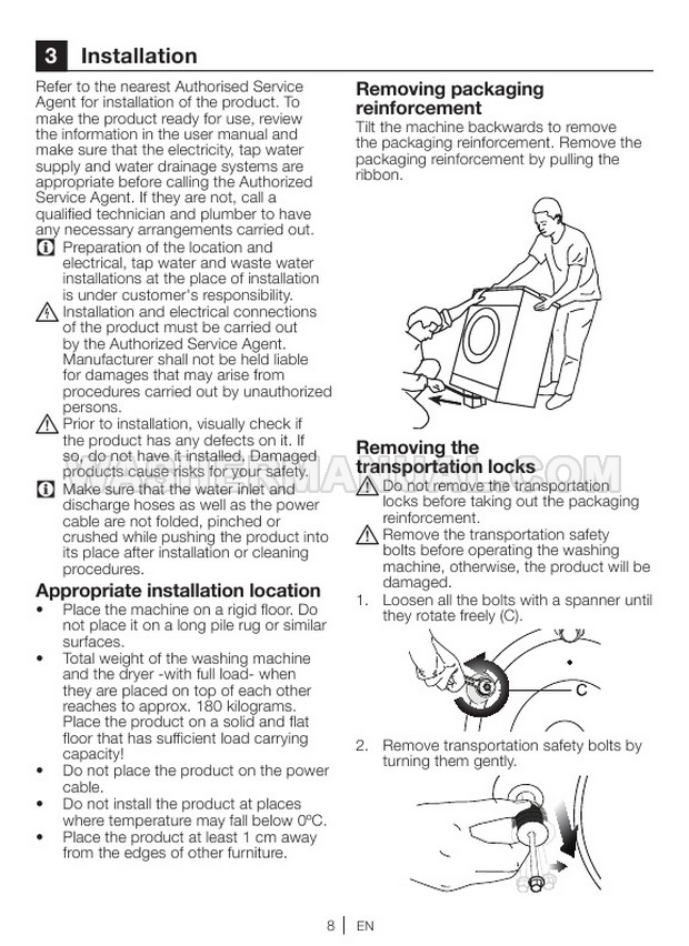 Installation & operating instructions for Beko WM5120W 5kg laundry machine with front load on 36 pages.