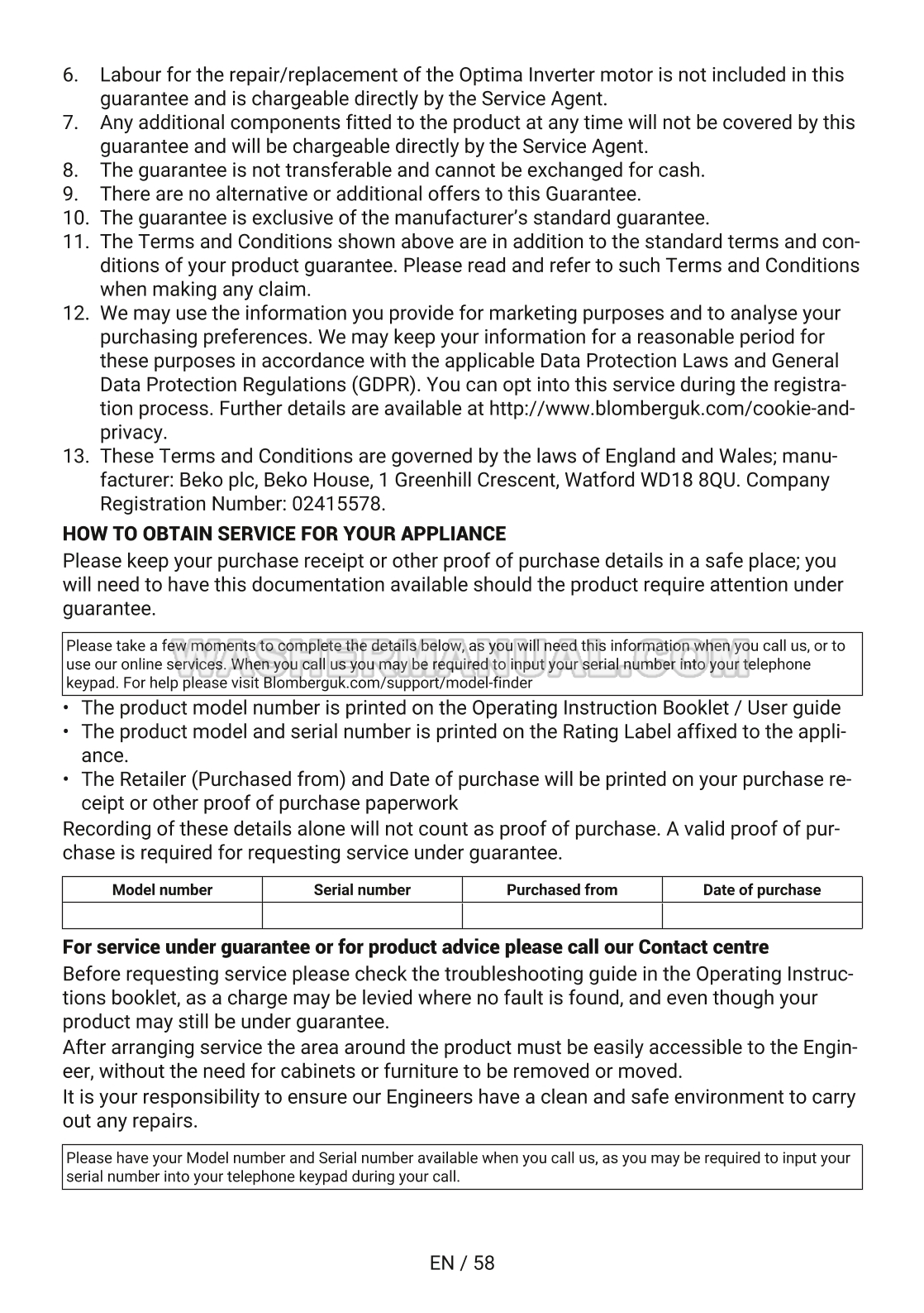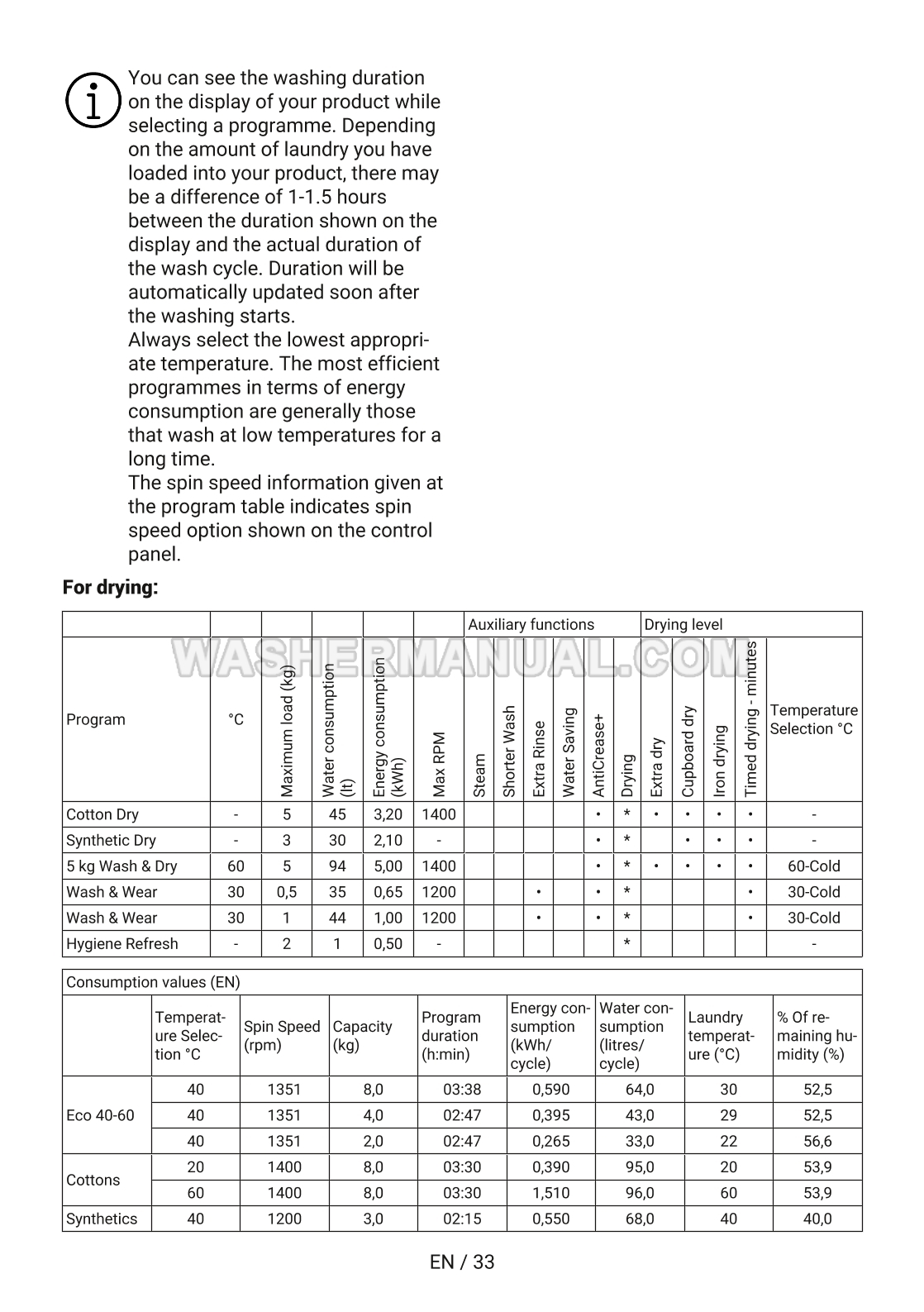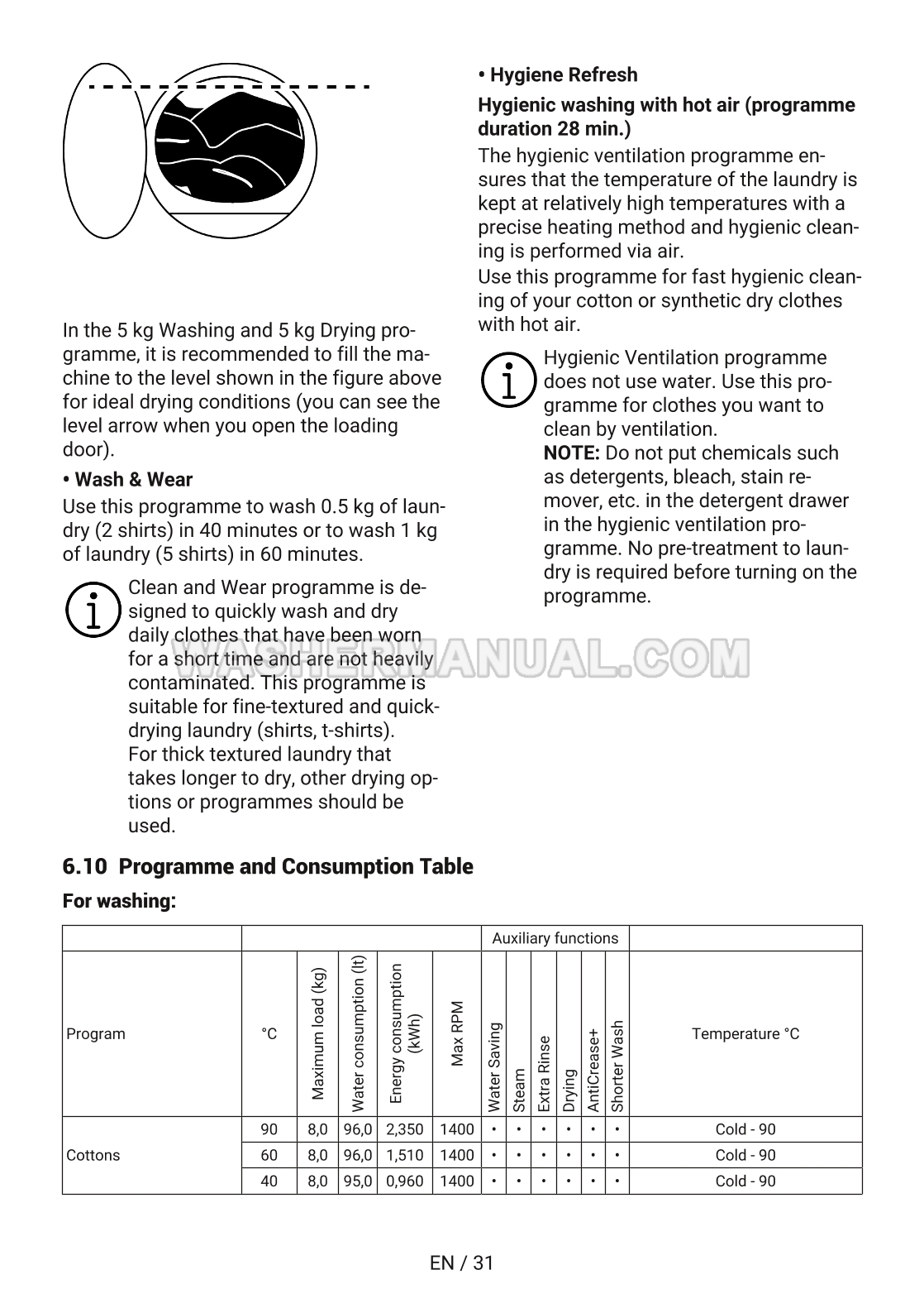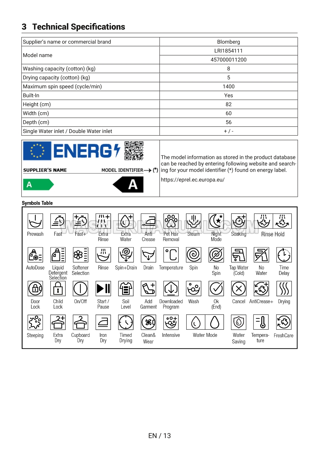 User manual for Blomberg LRI1854111 Washer Dryer built-in combo 1400 RPM with 8kg / 5kg capacity, Optima inverter motor, Hygiene+ Wash & Dry programme and digital display (LRF854311) laundry machine with front load on 60 pages.