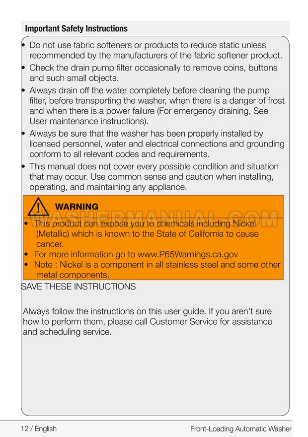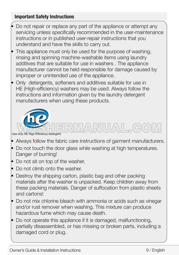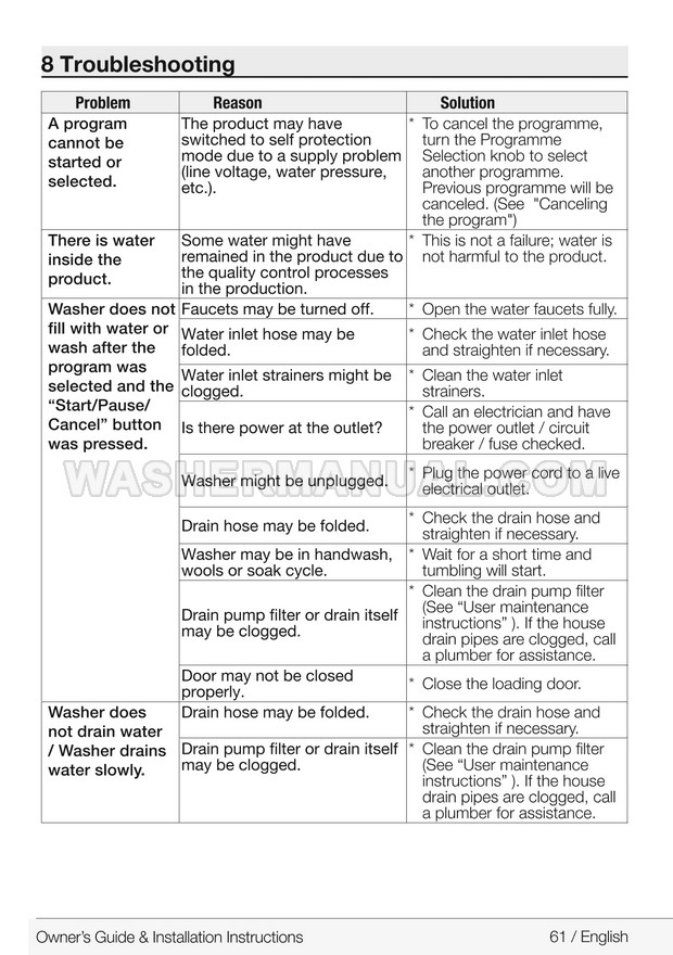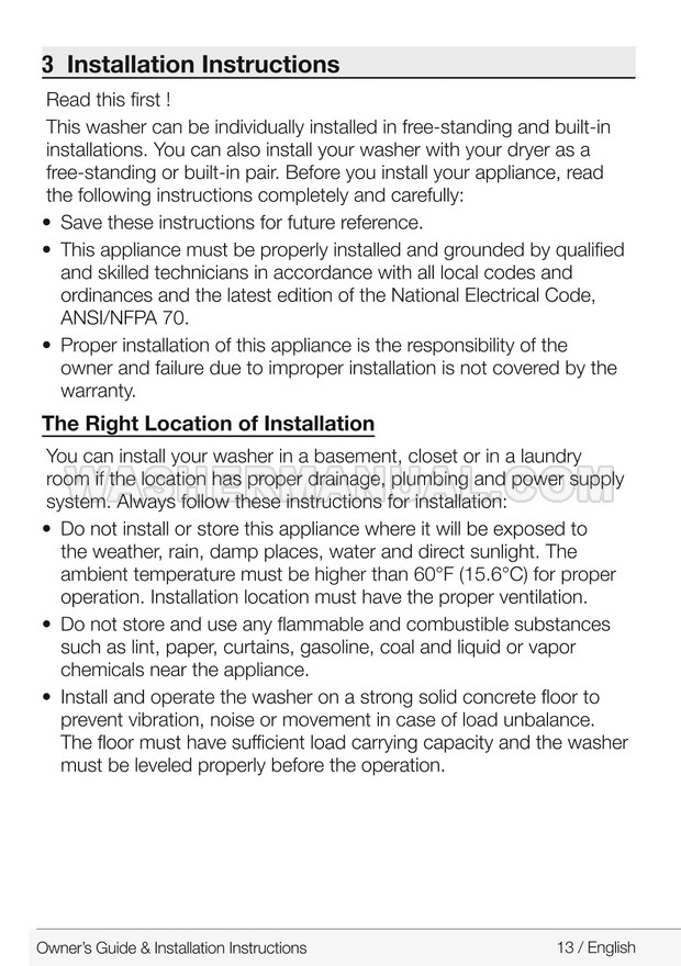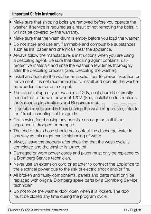 Blomberg WM72200W Owner's Guide & Installation Instructions