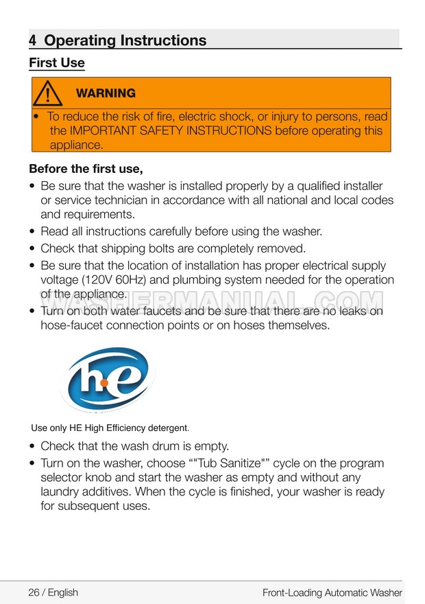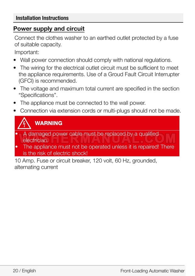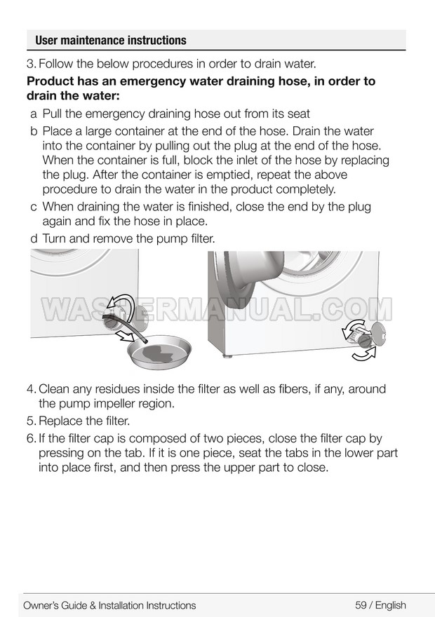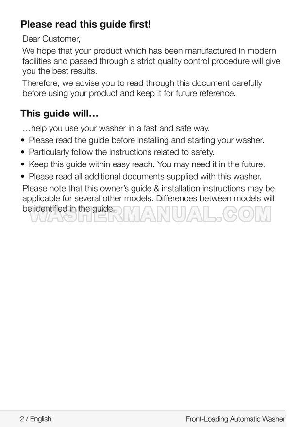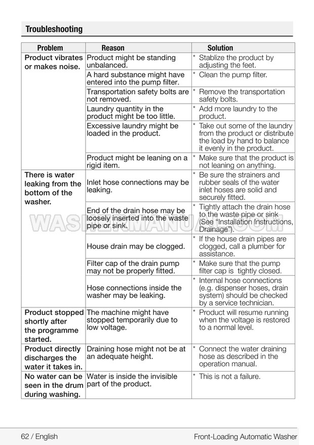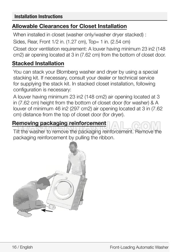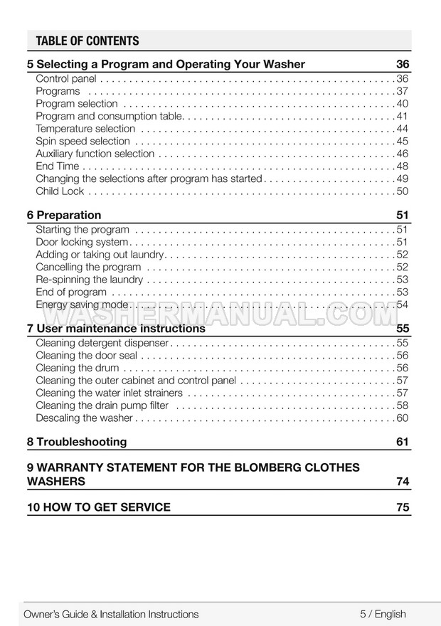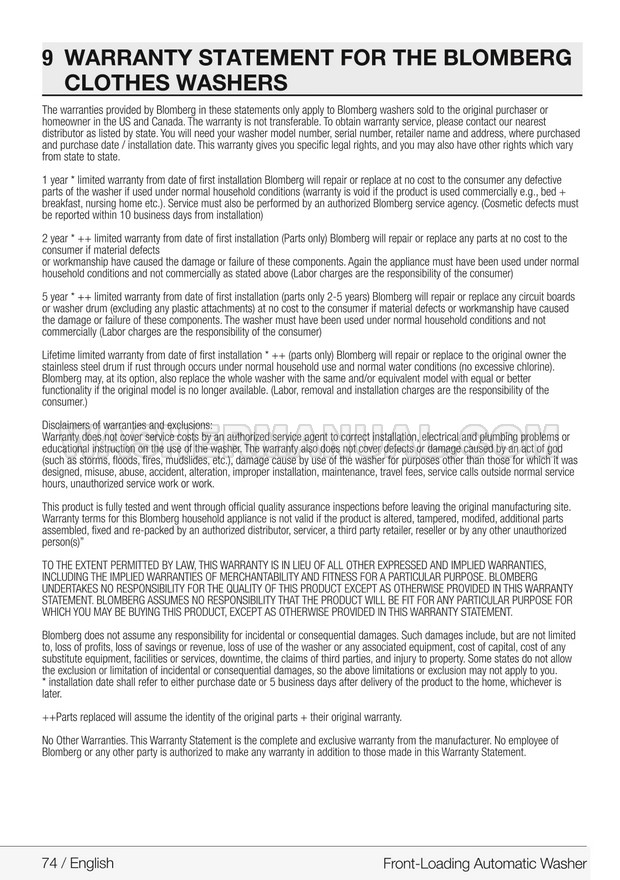 Owner's guide & installation instructions for Blomberg WM72200W white 1.95 cu. ft. capacity 1200 RPM laundry machine with front load on 76 pages.
