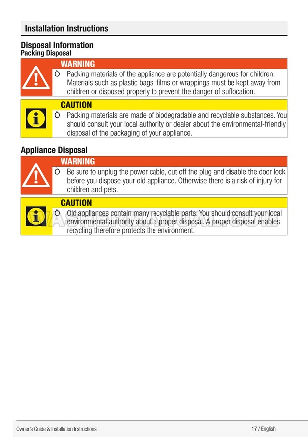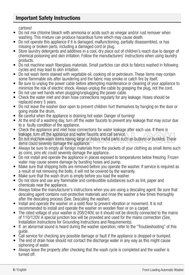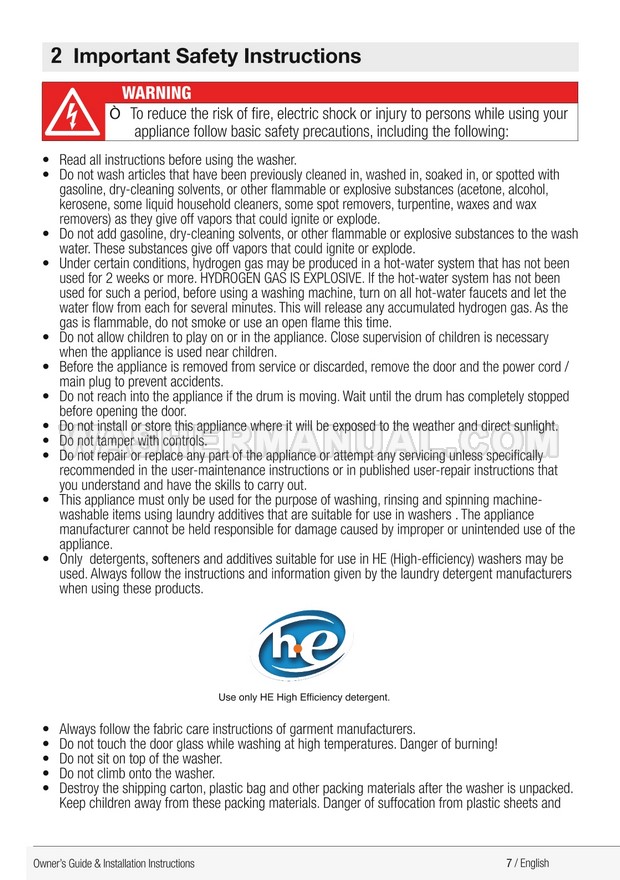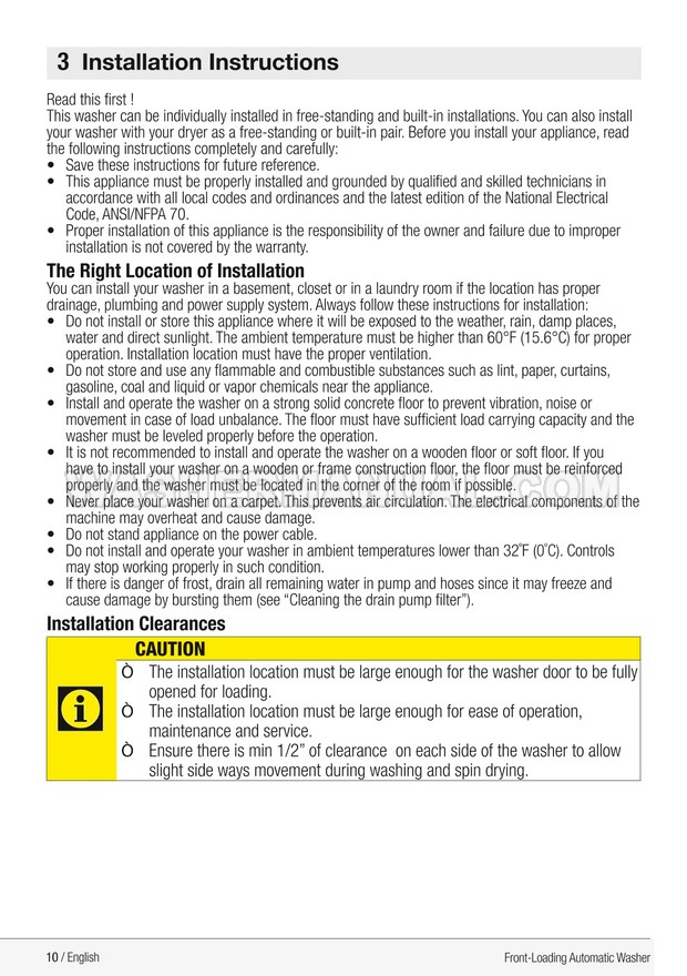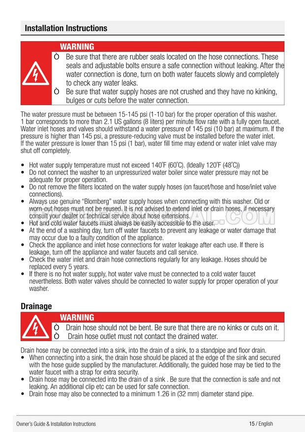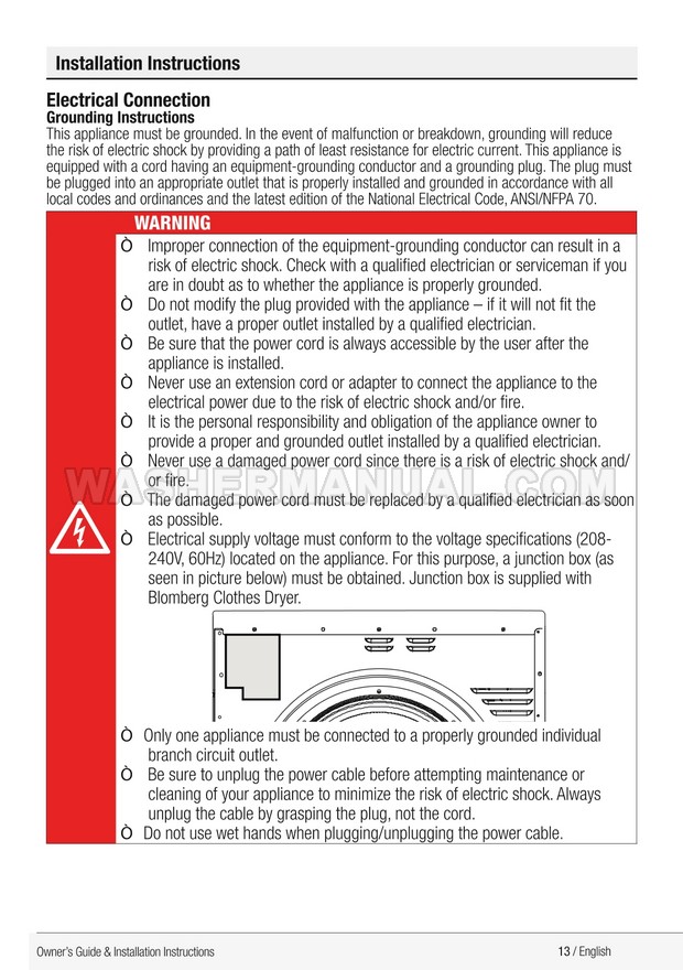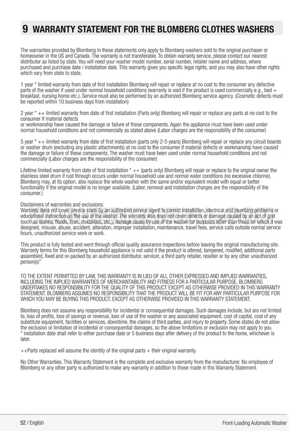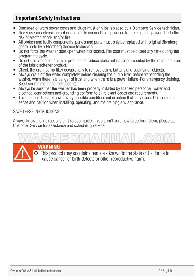 Blomberg WM77120 Owner's Guide & Installation Instructions