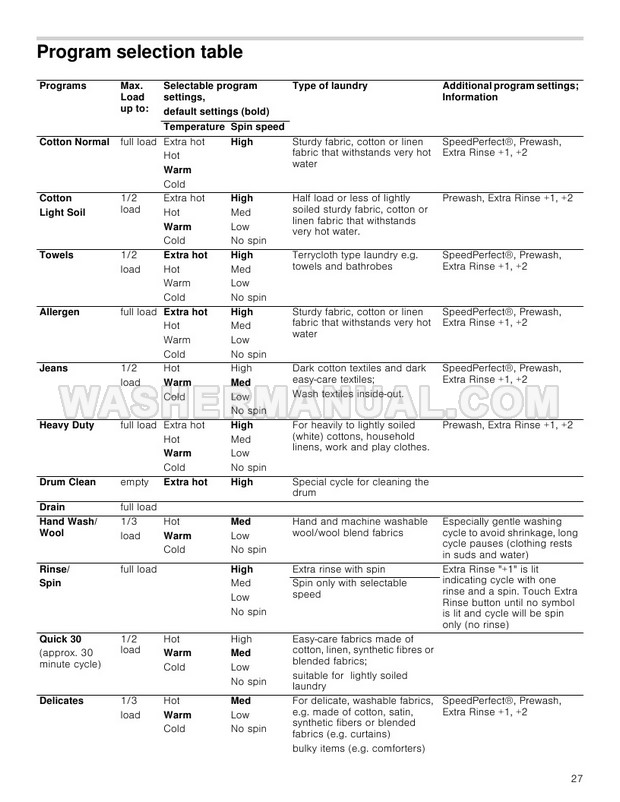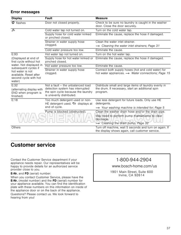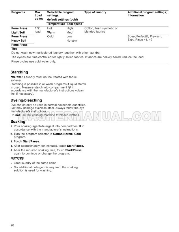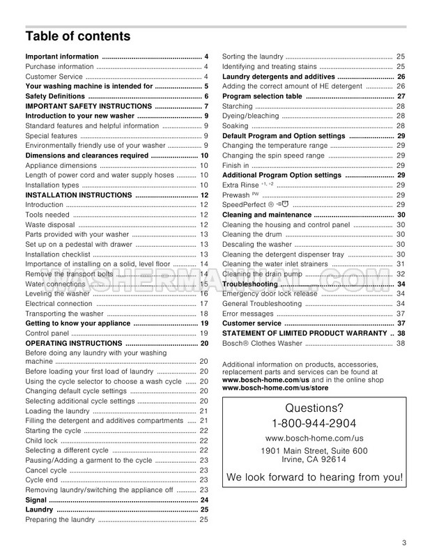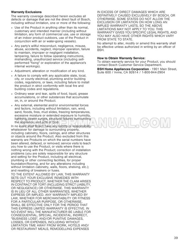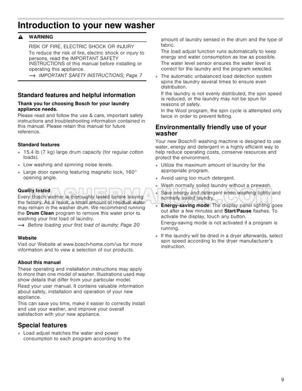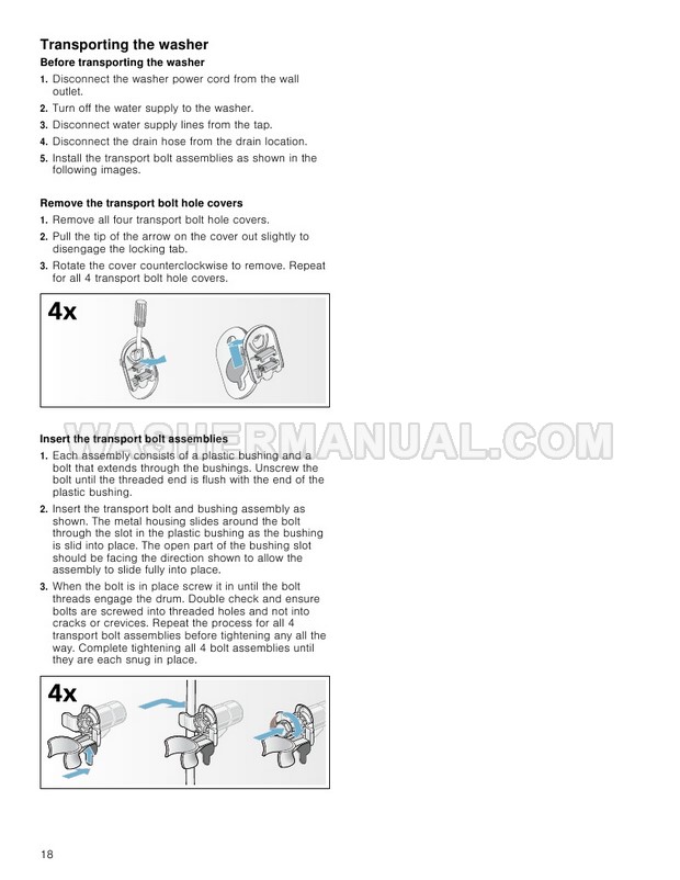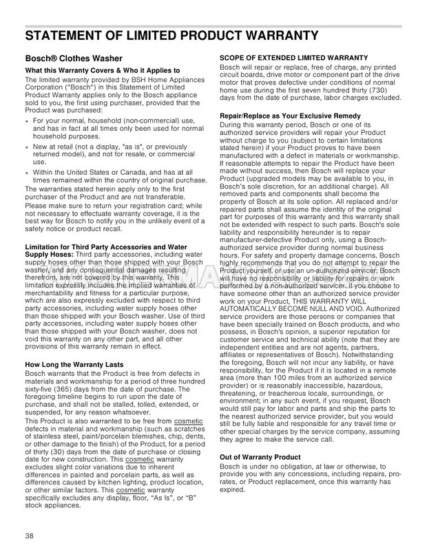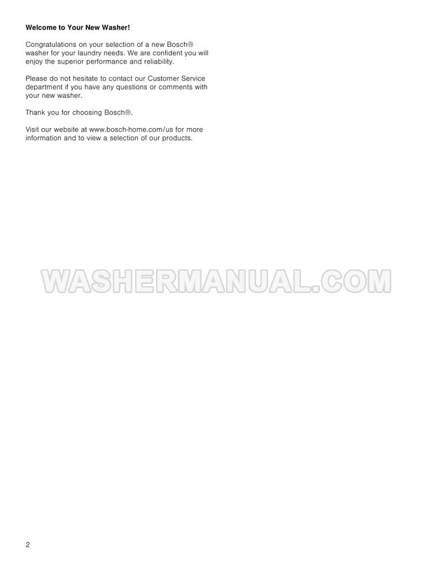 Washer Manual Bosch WAT28400UC Use and Care Manual Bosch WAT28400UC Use and Care Manual Rating 2.5 (votes: 2) Description Use and care manual for Bosch WAT28400UC 300 Series laundry machine with front load on 40 pages.