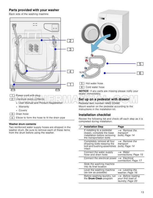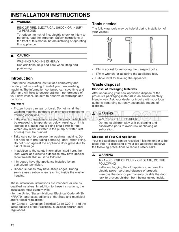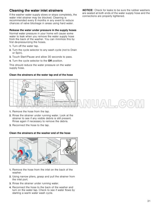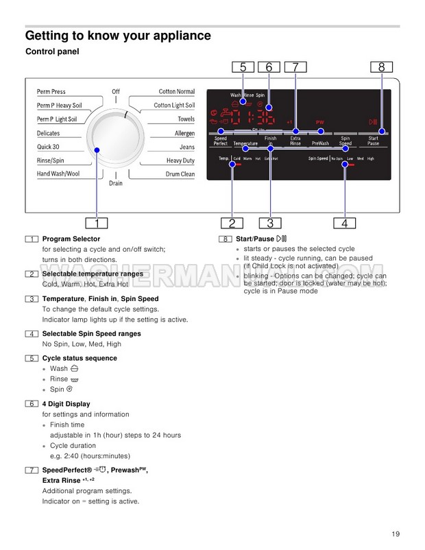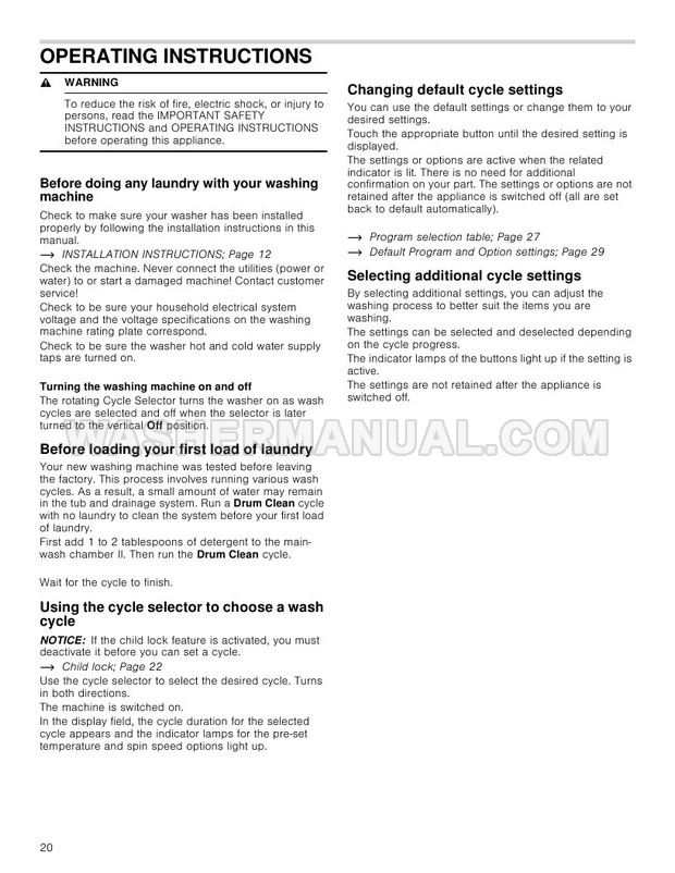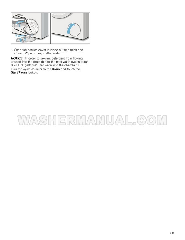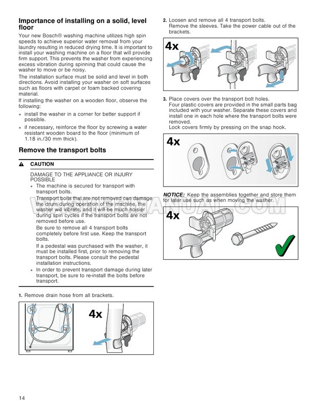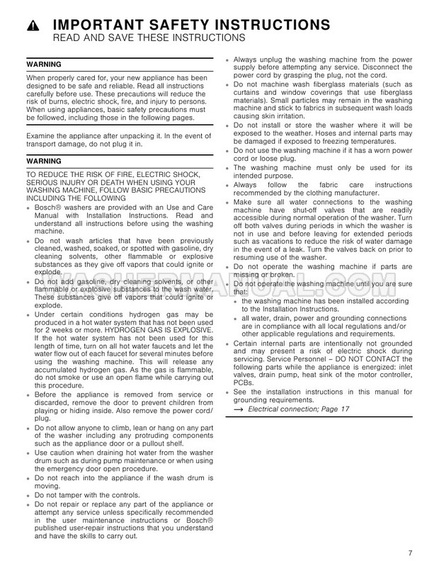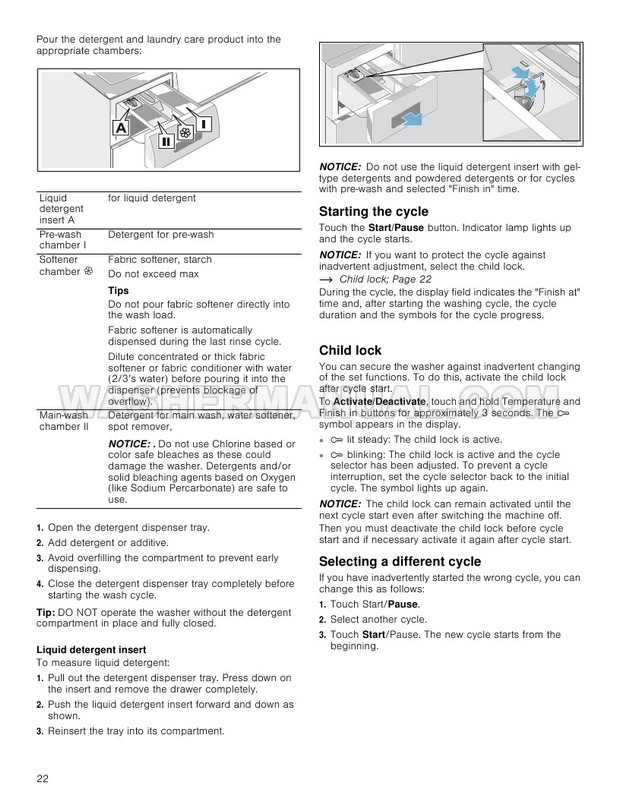 Washer Manual Bosch WAT28400UC Use and Care Manual Bosch WAT28400UC Use and Care Manual Rating 2.5 (votes: 2) Description Use and care manual for Bosch WAT28400UC 300 Series laundry machine with front load on 40 pages.
