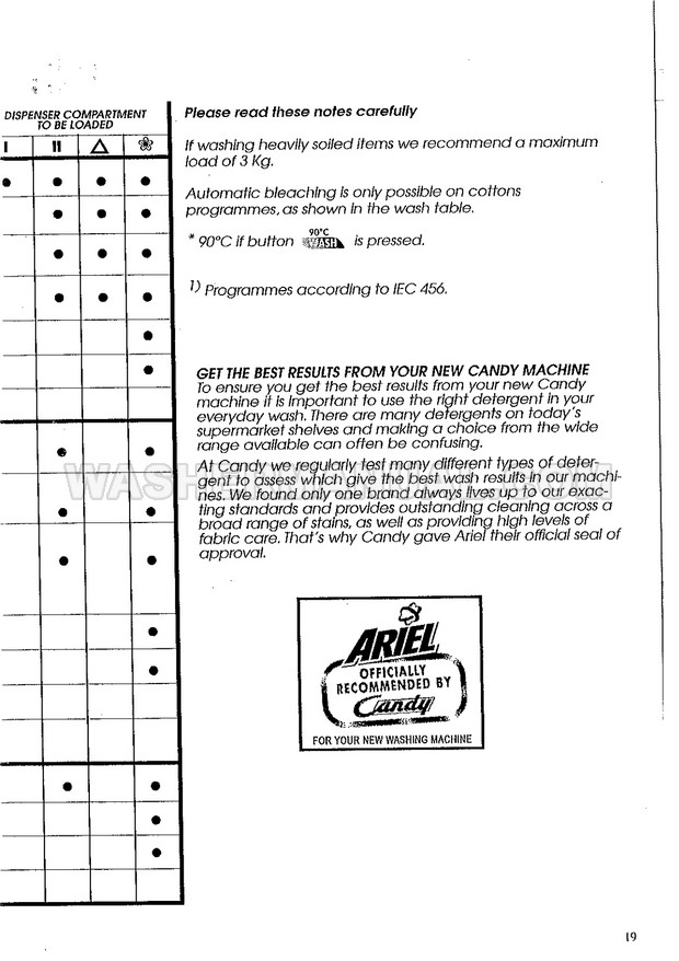 Candy CE 104 User Instructions