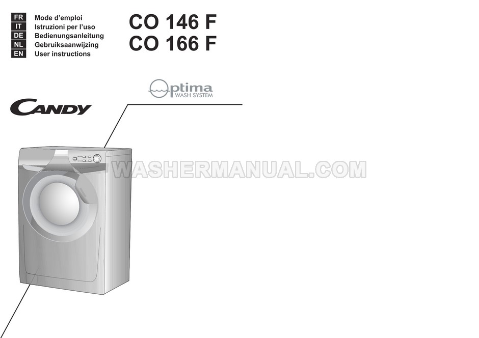 User instructions for Candy CO 166 F Optima 6kg 1400 RPM AAA class laundry machine with front load on 41 pages.