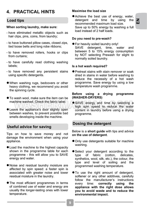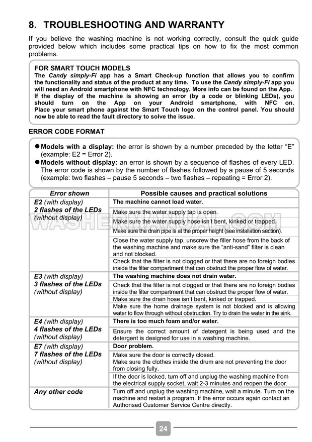 User manual for Candy CS 147TE Smart (CS 149TBBE/1-80) black freestanding 9 kg 1400 RPM class D 16 programmes laundry machine with front load on 28 pages.