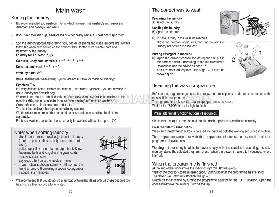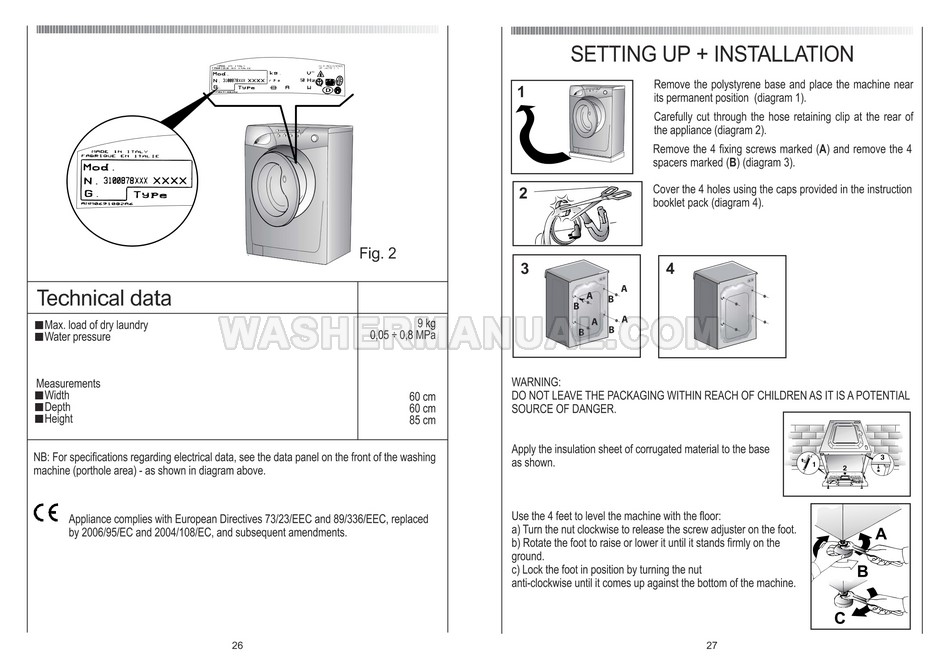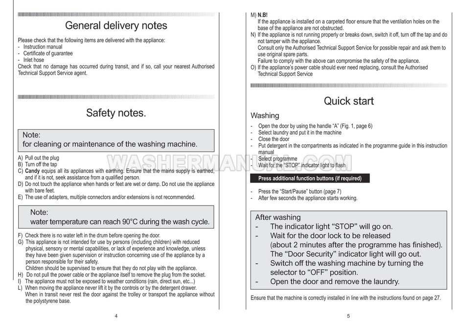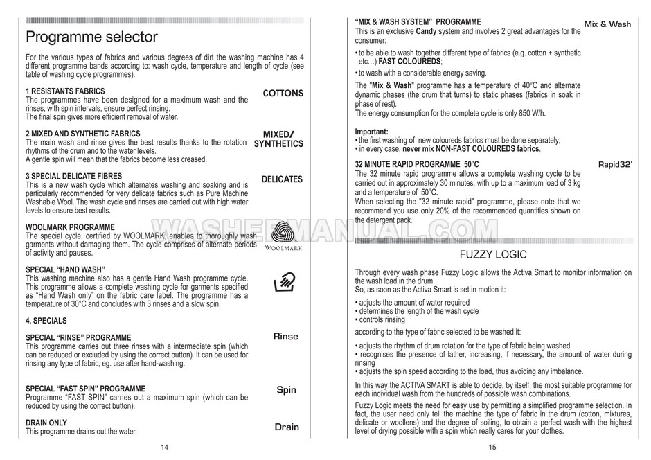 Instructions for use for Candy GO 292 Grand'O (GO 292-80) 9kg laundry machine with front load on 17 pages.