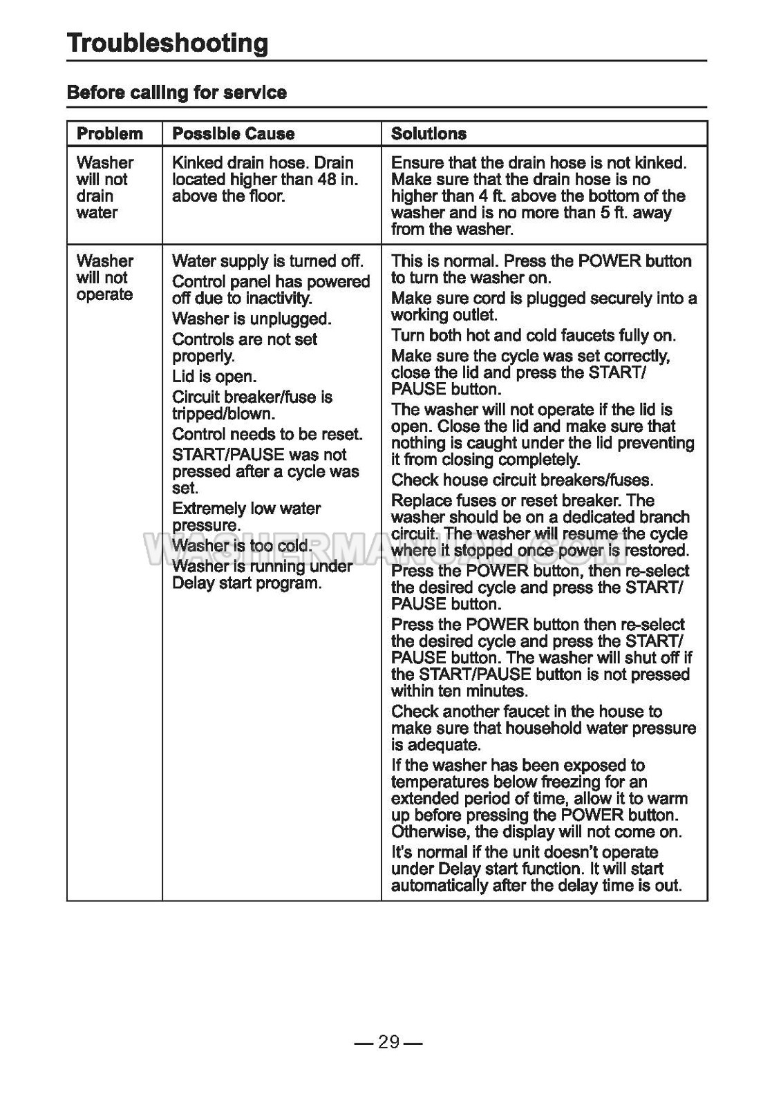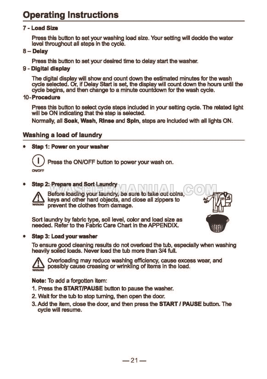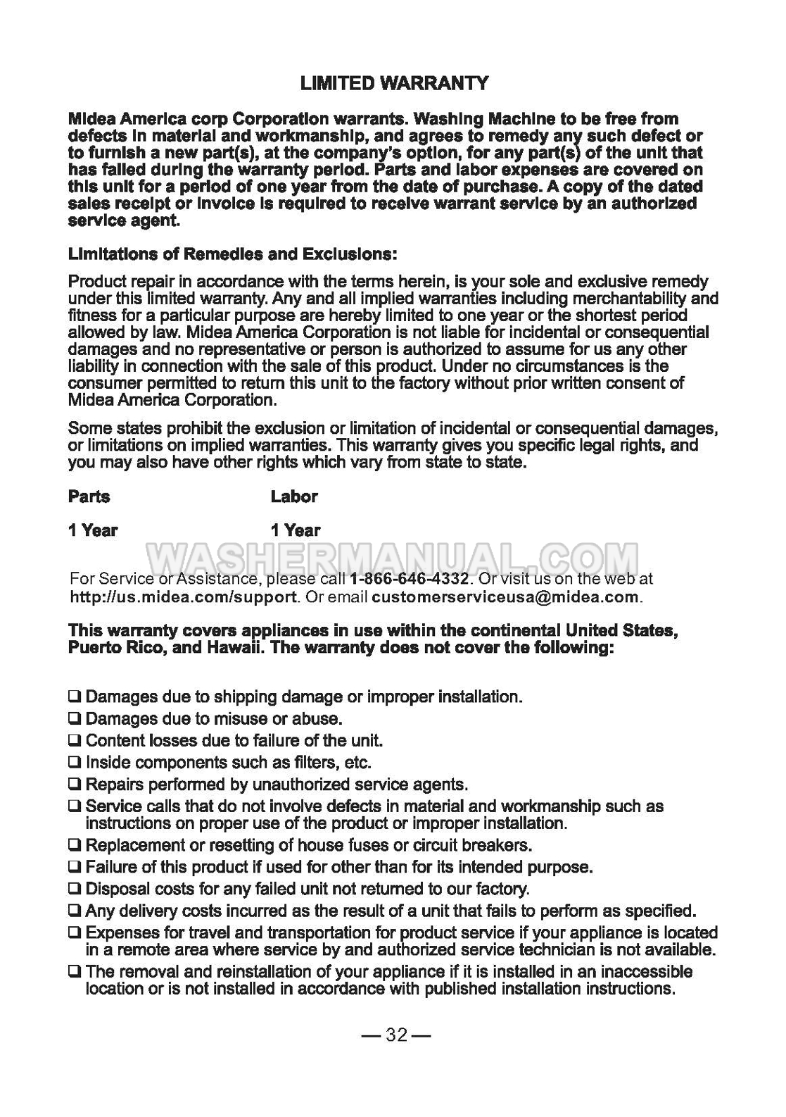 Owner's manual for Comfee CLV20N3AWW space-saving 2.0 cu.ft portable washer featuring delay start and reload, water temperature selection, tub clean function, Hygiene+ mode, and child lock for safer, more hygienic laundry laundry machine with top load on 35 pages.