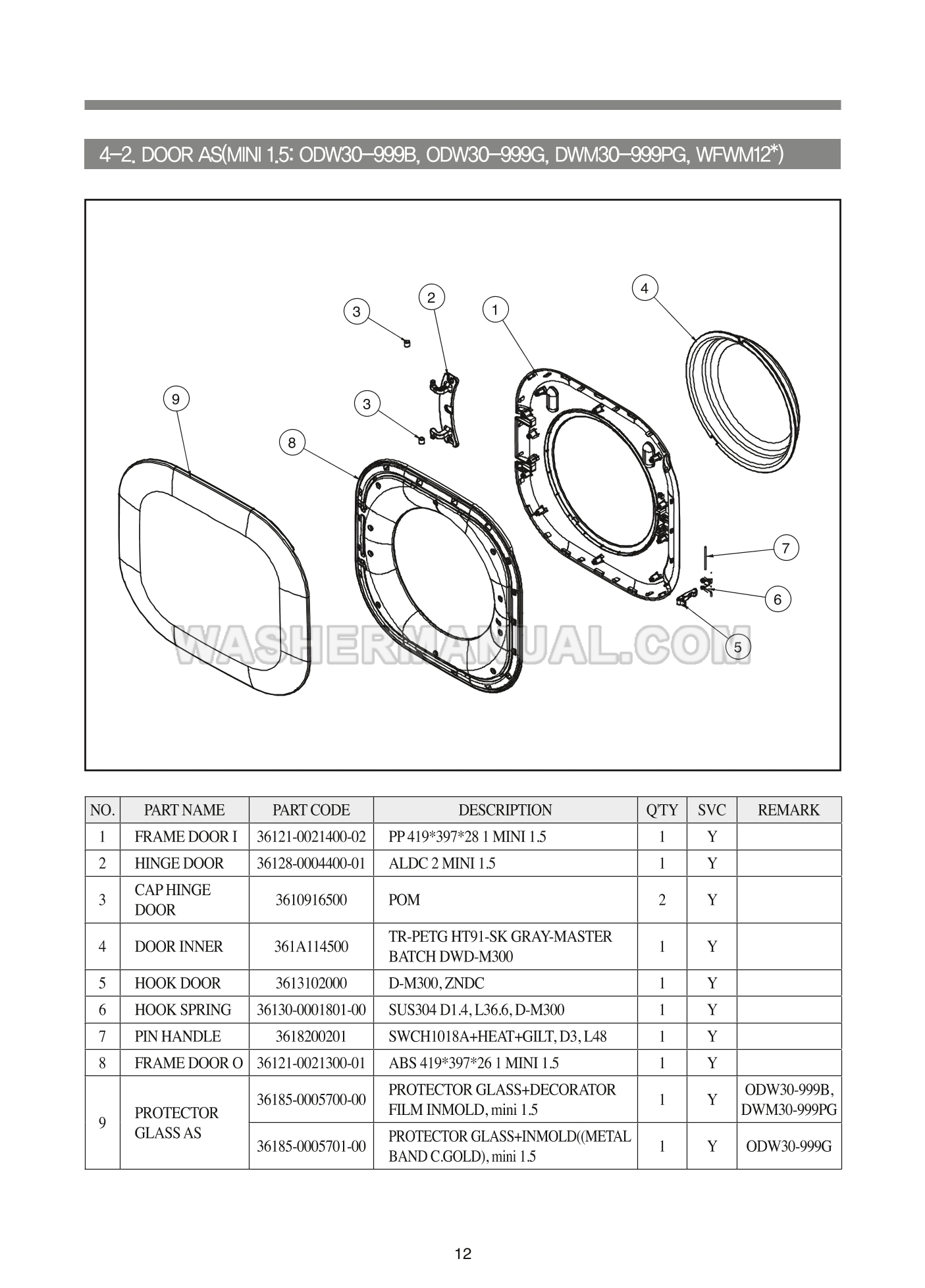 Service manual for Daewoo ODW30-999G MINI wall-mounted 2.5kg with inverter motor, Door Lock and Star Drum (Mini 1.5 WFWM122, ODW-MGD888T) laundry machine with front load on 58 pages.