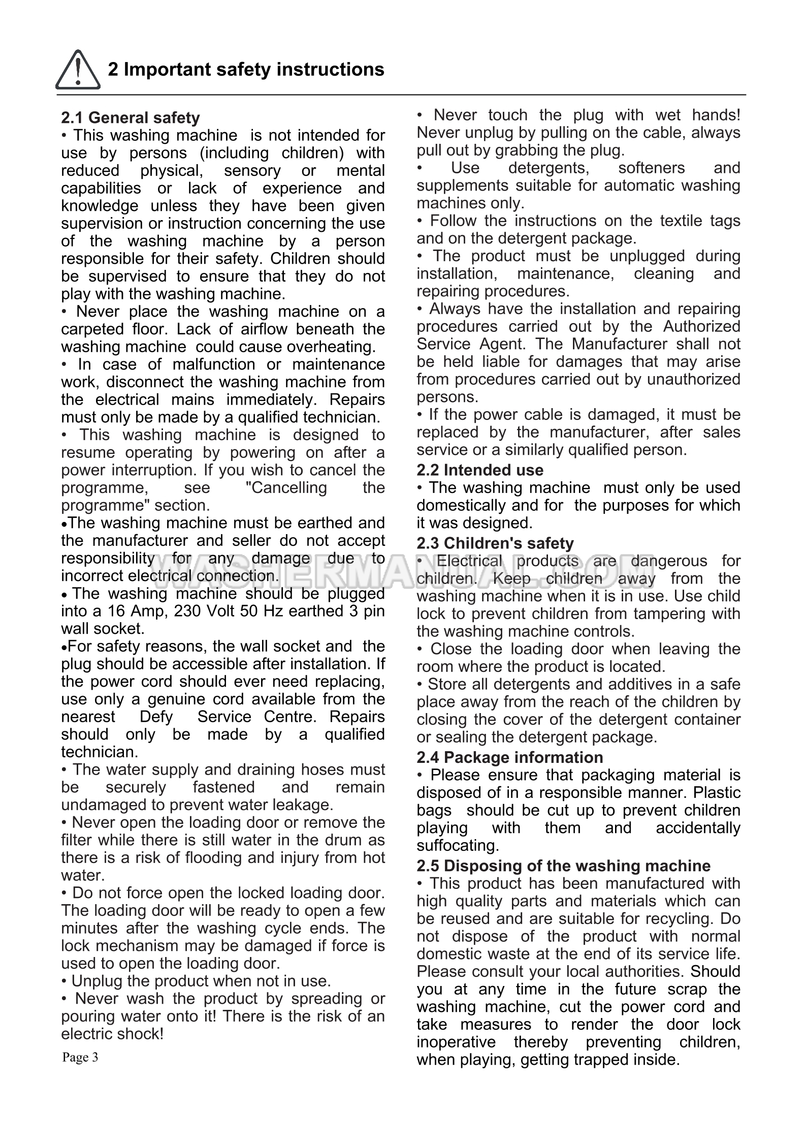 User's manual for Defy DAW370 eco freestanding silver 6kg 1000 rpm spin speed with Quick Wash, Cotton Eco and Eco Wash programmes (DAW 370) laundry machine with front load on 24 pages.