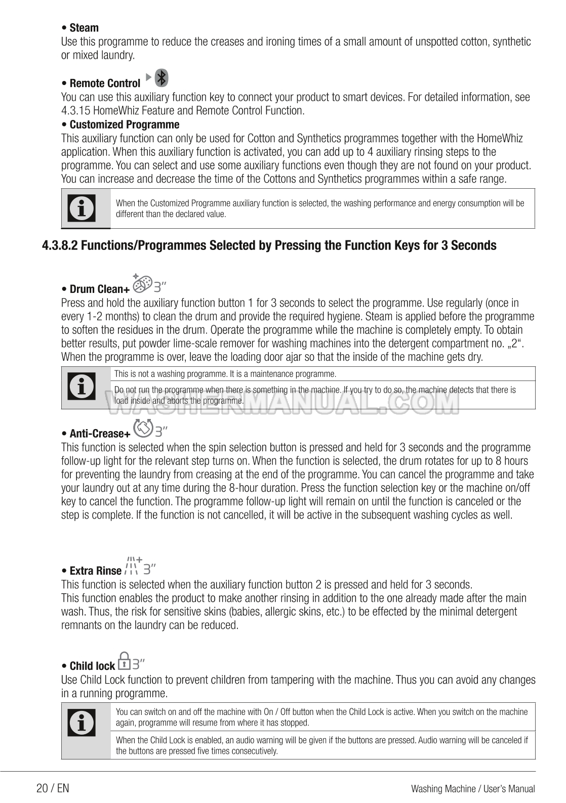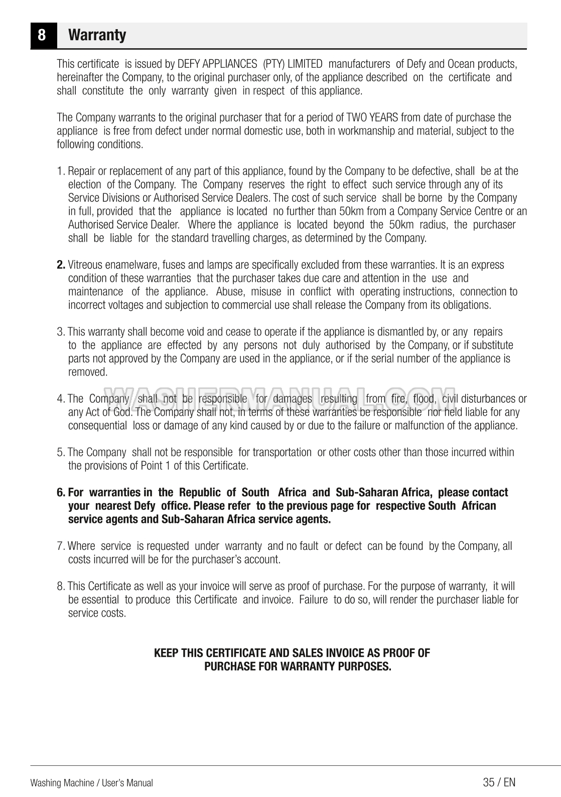 Users manual for Defy DAW388 spacious 12kg front load washing machine with SteamCure technology, 1400 rpm spin speed, and digital display for powerful cleaning and gentle fabric care (DAW 388) on 36 pages.