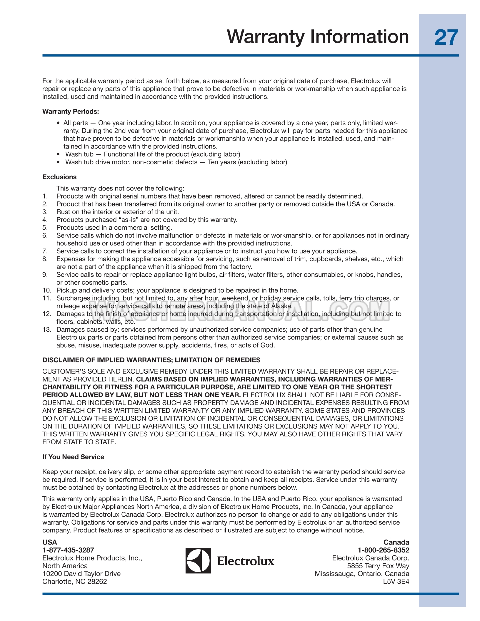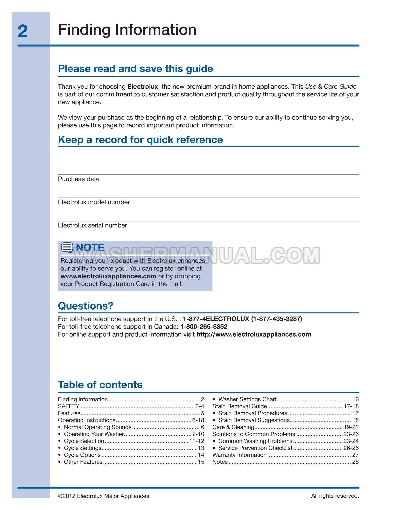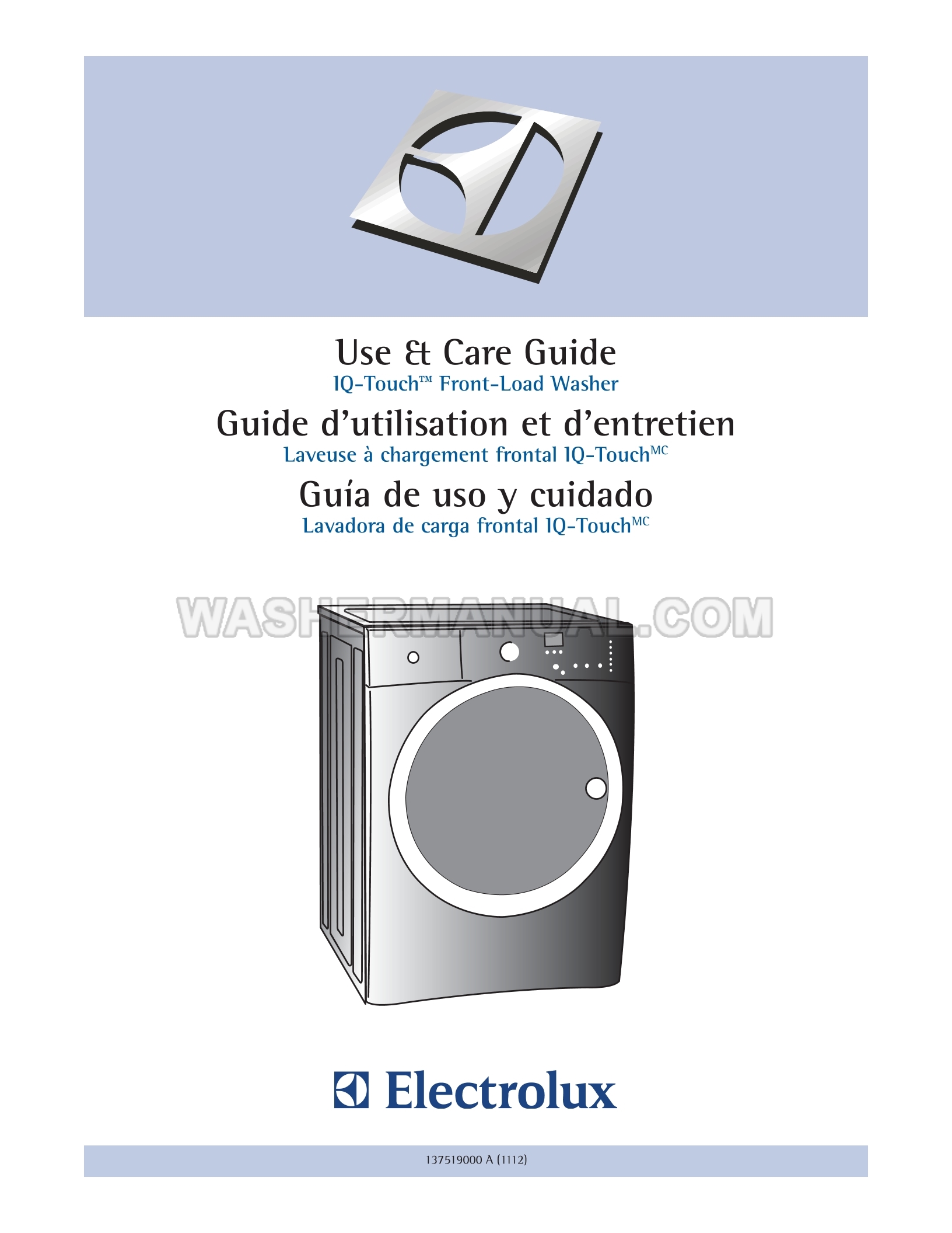 Use & care guide for Electrolux EIFLW50LIW 4.2 cu. ft. freestanding 27" 1200rpm featuring IQ-Touch with electronic controls, Luxury-Quiet, Luxury-Design and Luxury-Glide (EIFLW50L IW, EIFLW50LIW1) laundry machine with front load on 28 pages.