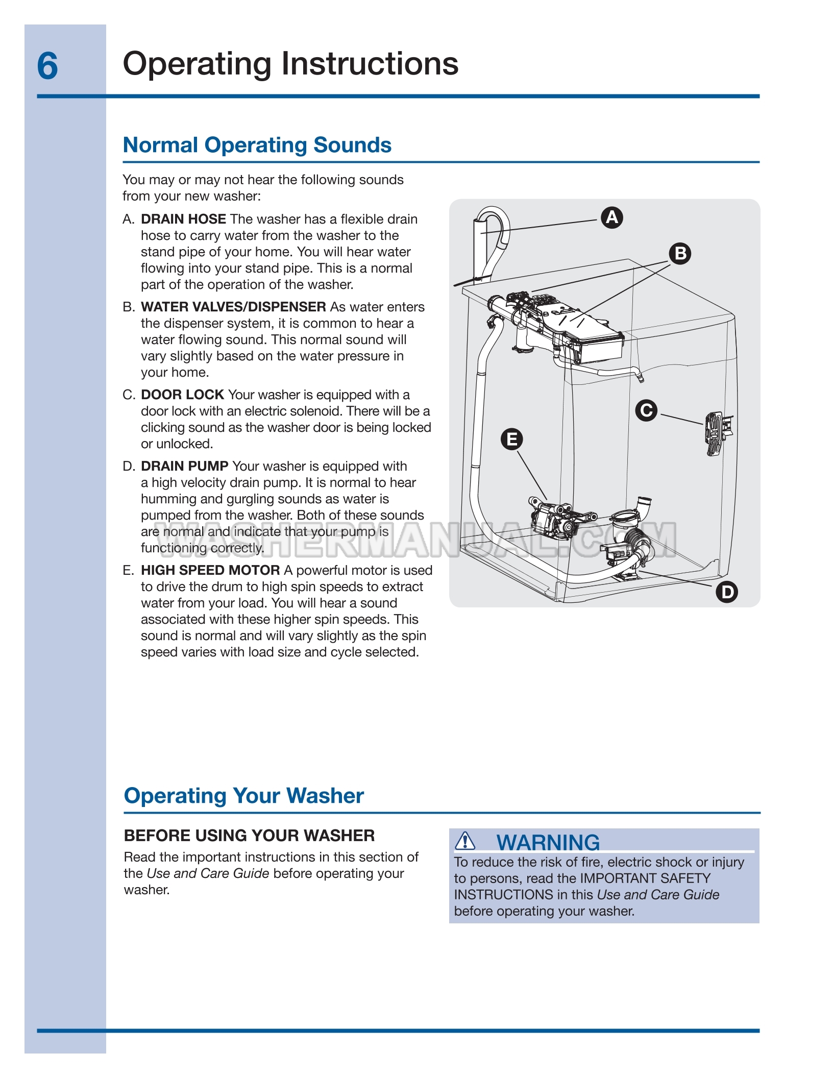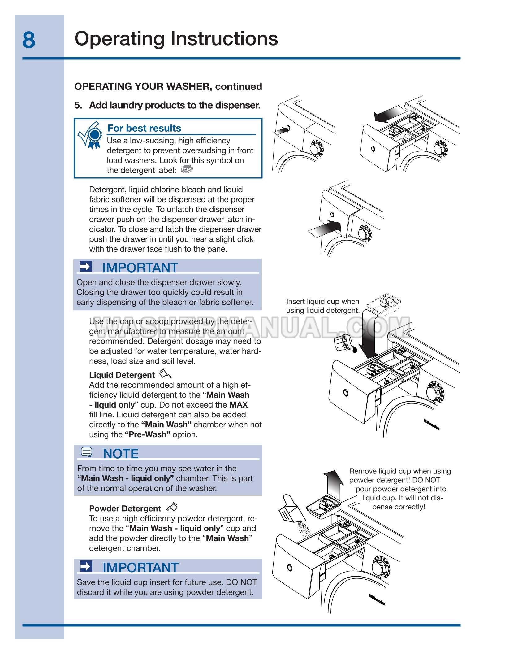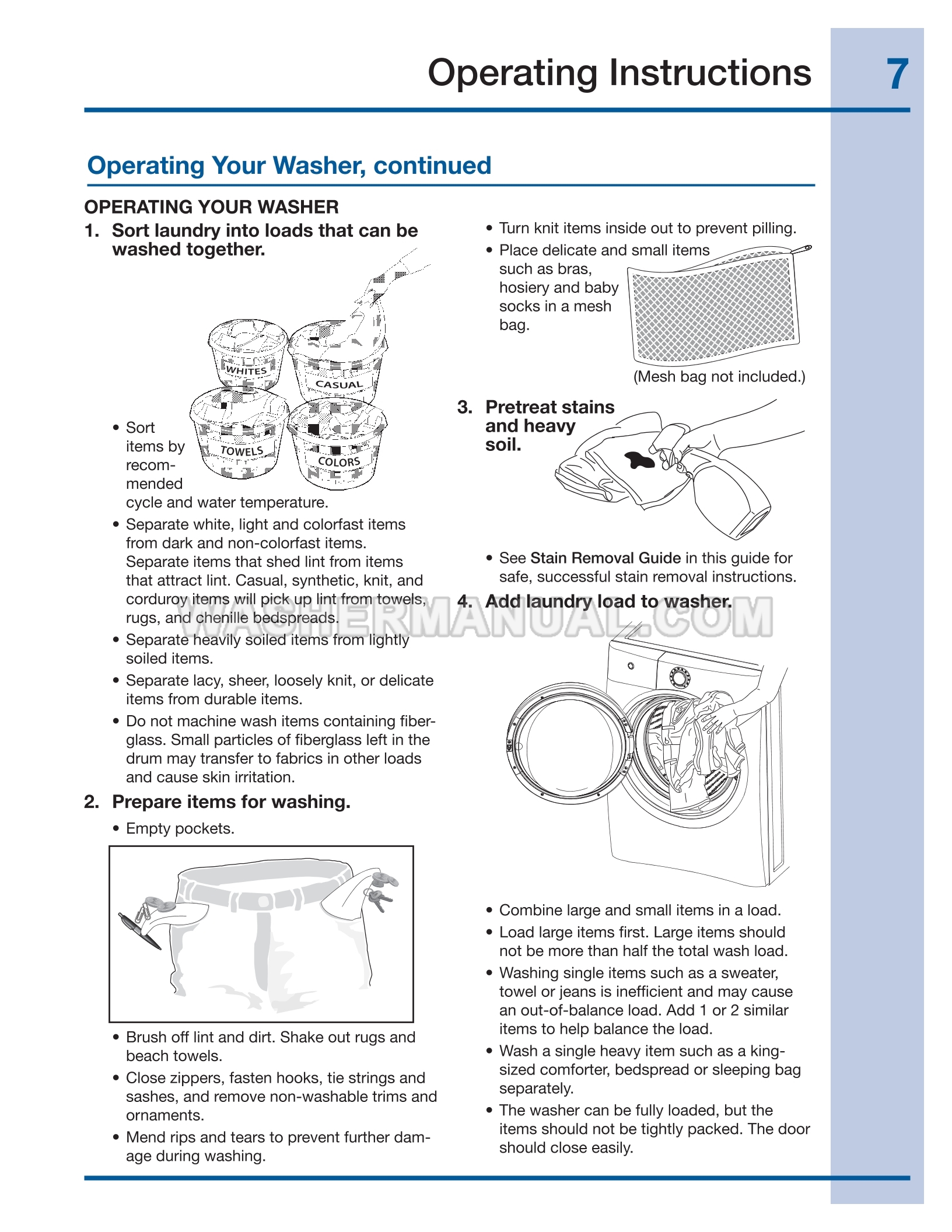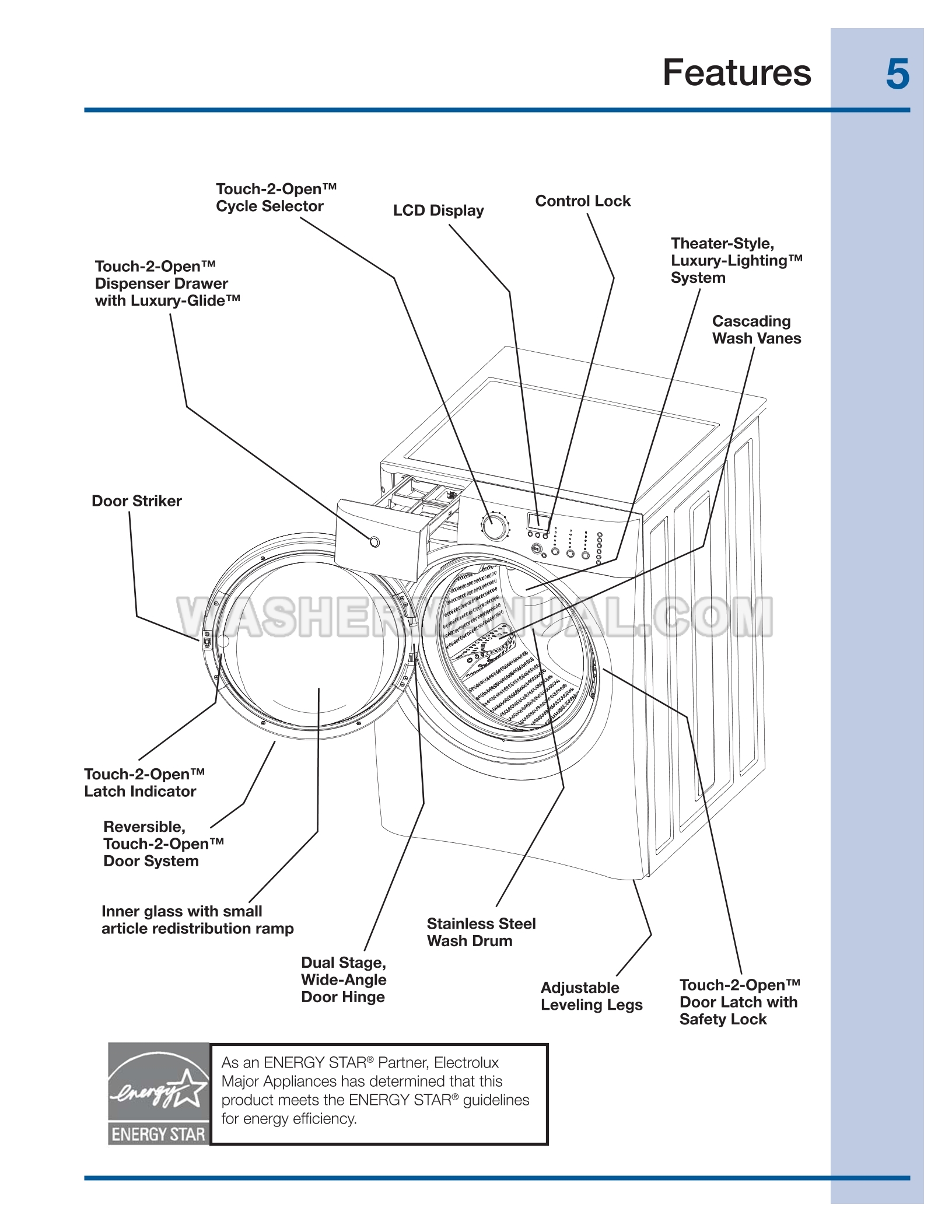 Use & care guide for Electrolux EIFLW50LIW 4.2 cu. ft. freestanding 27" 1200rpm featuring IQ-Touch with electronic controls, Luxury-Quiet, Luxury-Design and Luxury-Glide (EIFLW50L IW, EIFLW50LIW1) laundry machine with front load on 28 pages.