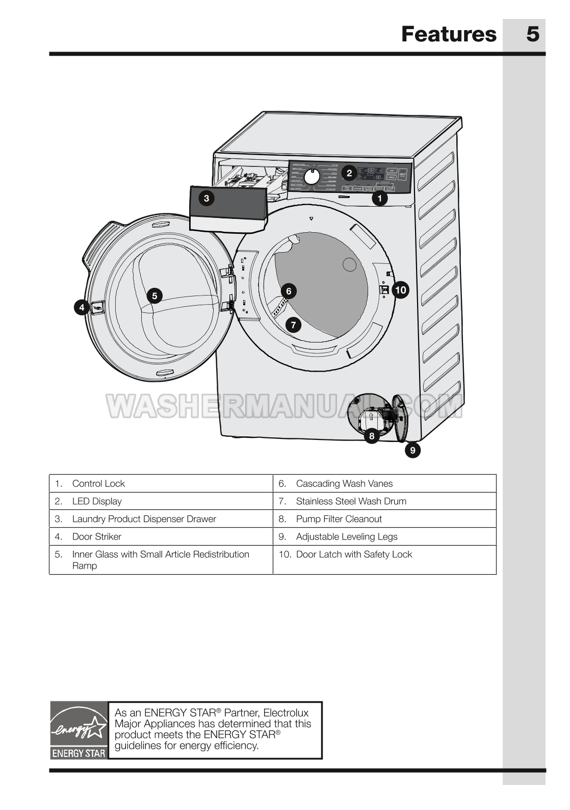 Use & care guide for Electrolux ELFW4222AW white compact freestanding 2.4 cu. ft. 24" with LuxCare, Prewash, Freshwater Rinse and Steam options laundry machine with front load on 32 pages.