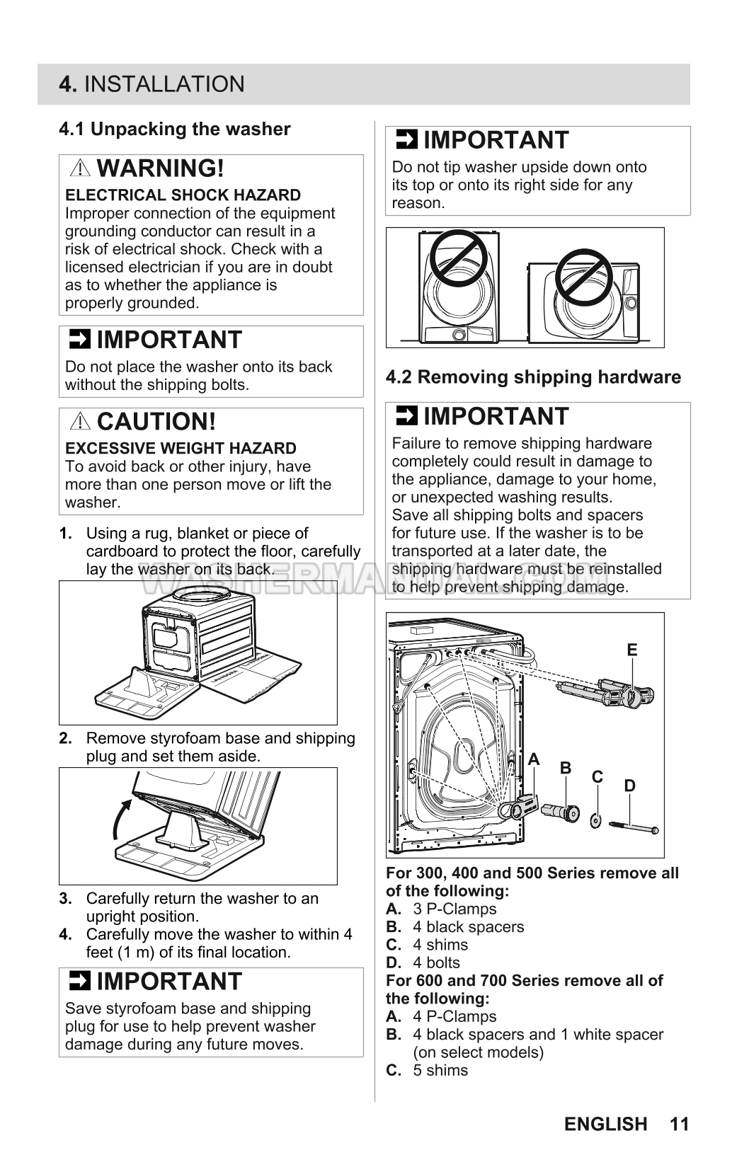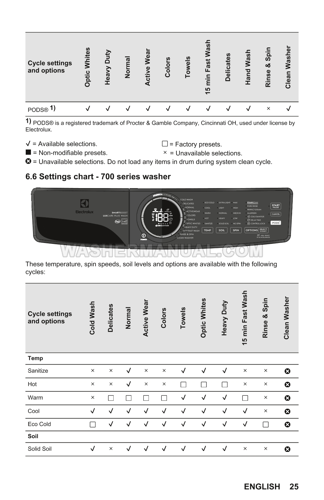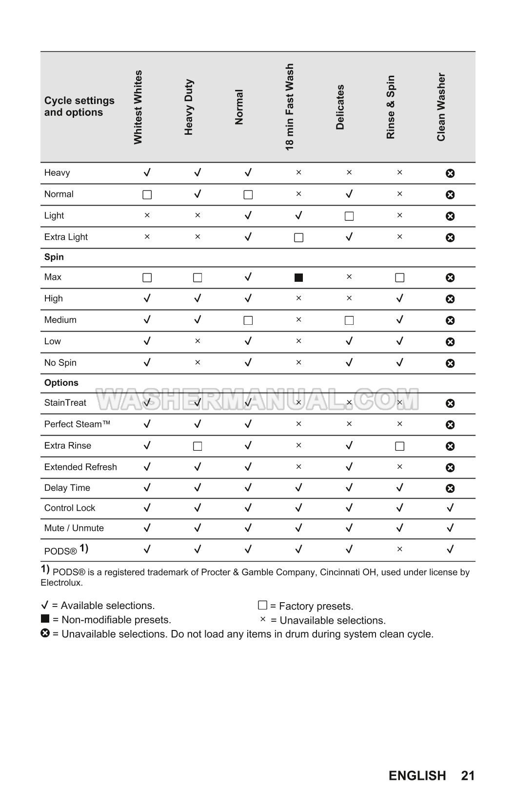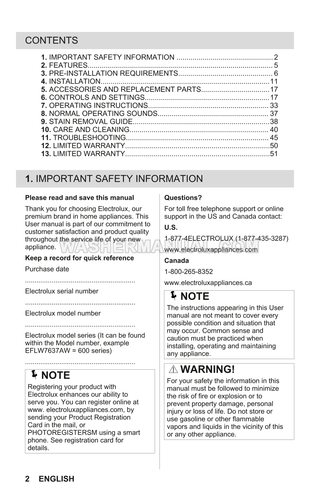 User manual for Electrolux ELFW7537AW 500 Series white 4.5 cu. ft. 1300 rpm with LuxCare Plus Wash, Clean Washer, and Perfect Steam laundry machine with front load on 56 pages.
