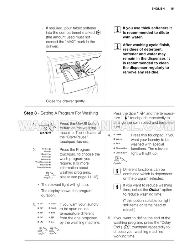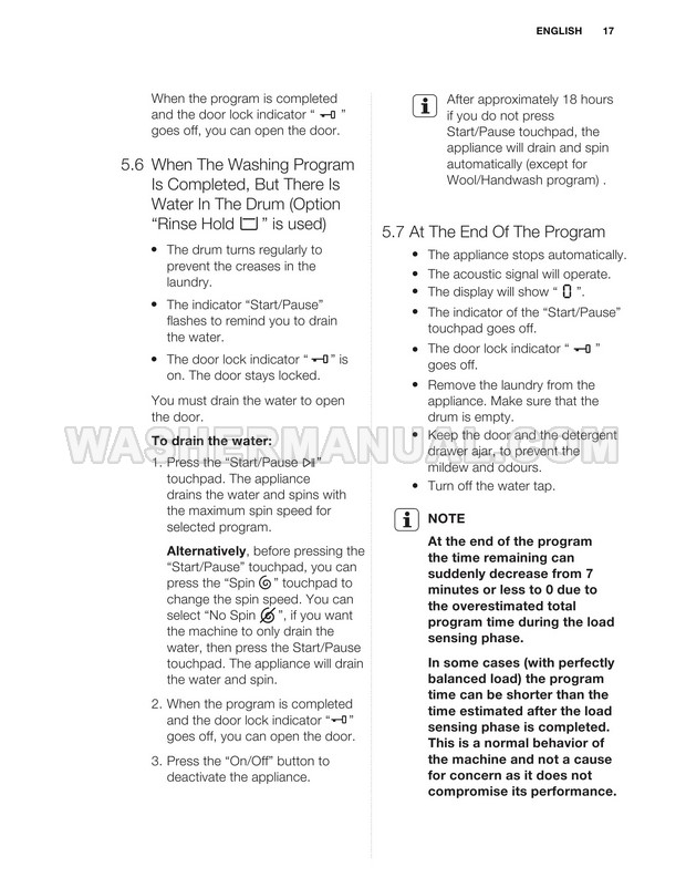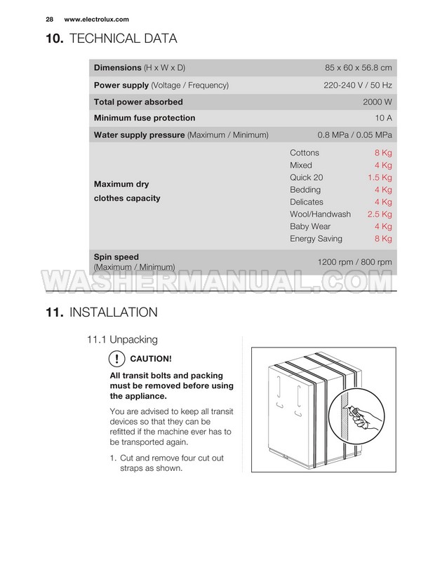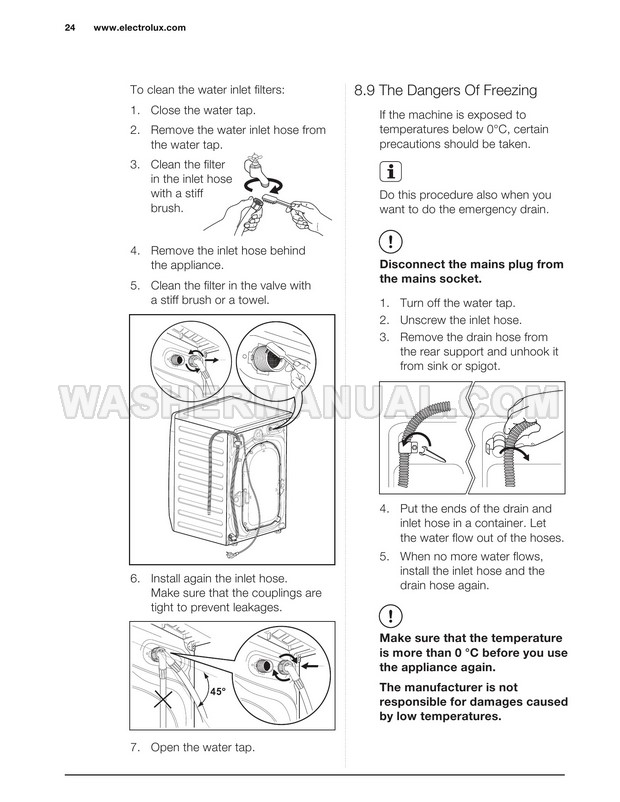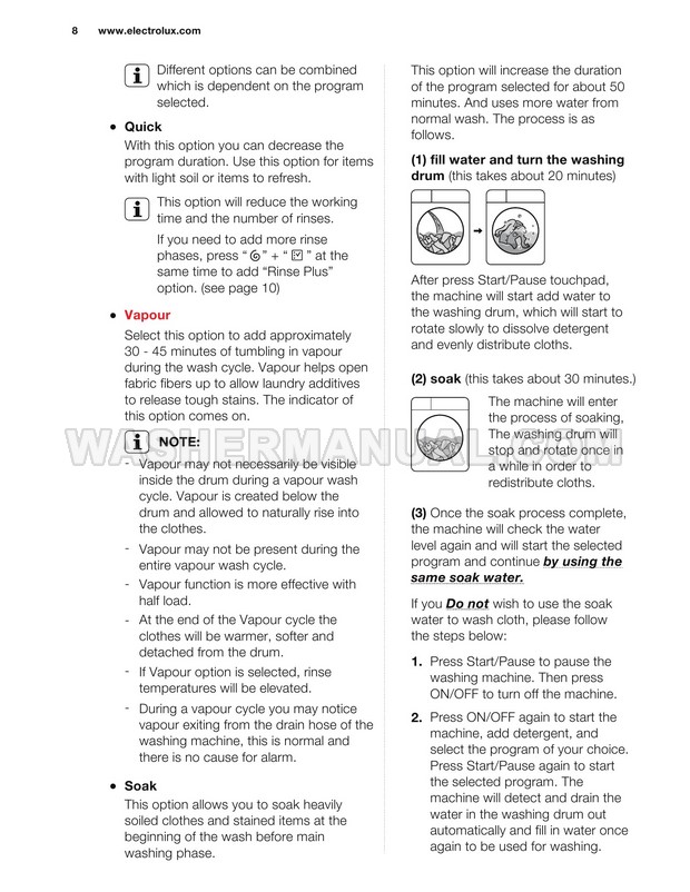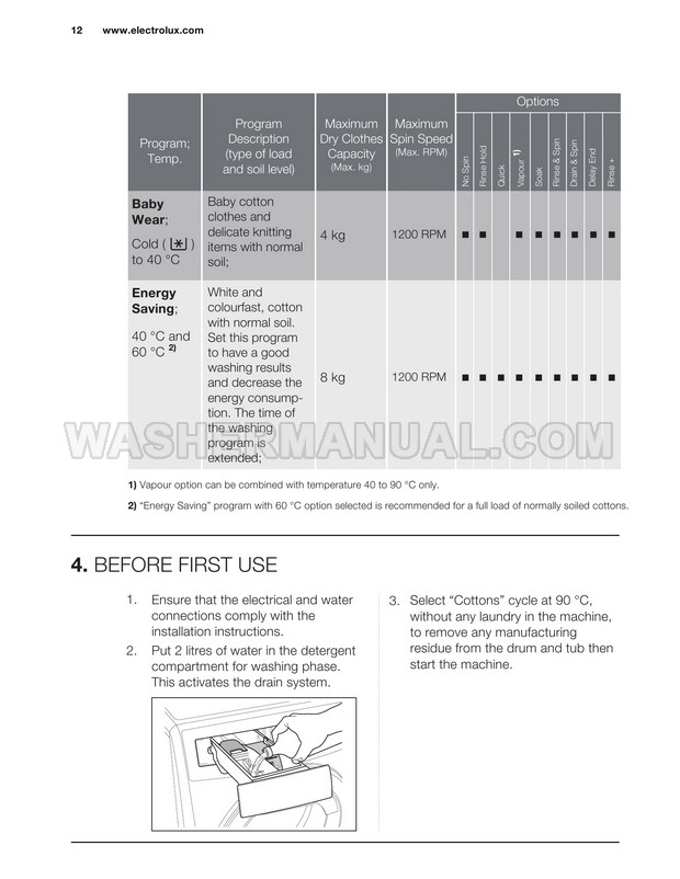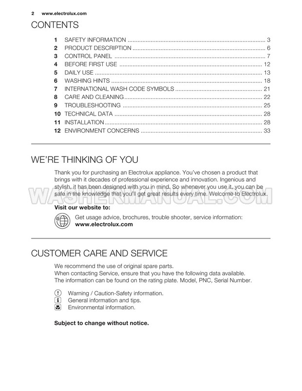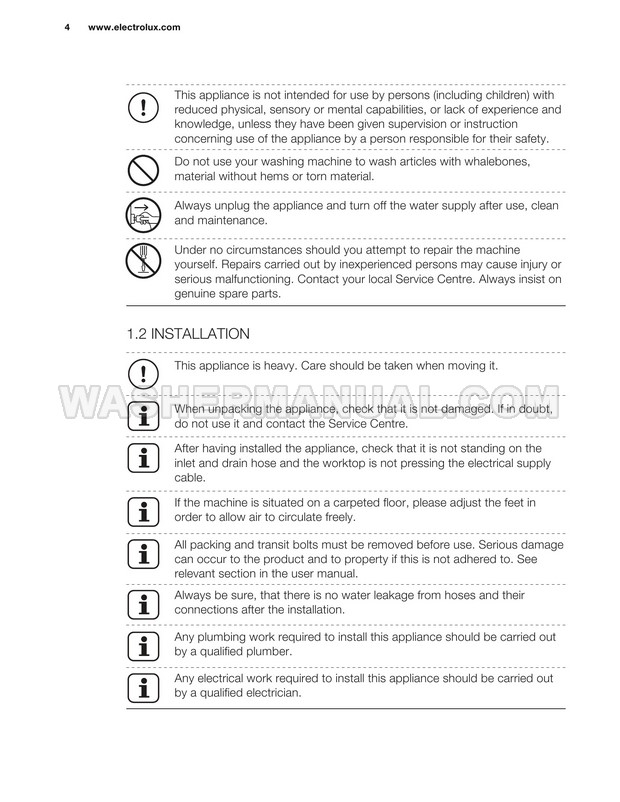 Washer Manual Electrolux EWF12844 User Manual Electrolux EWF12844 User Manual Rating 5.0 (votes: 1) Description User manual for Electrolux EWF12844 Vapour Care laundry machine with front load on 34 pages.