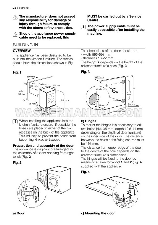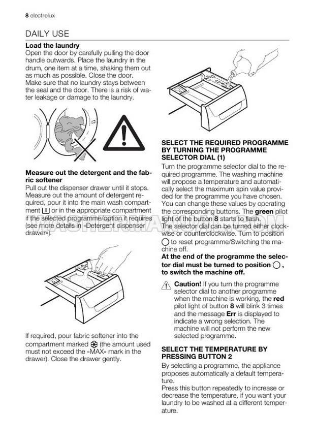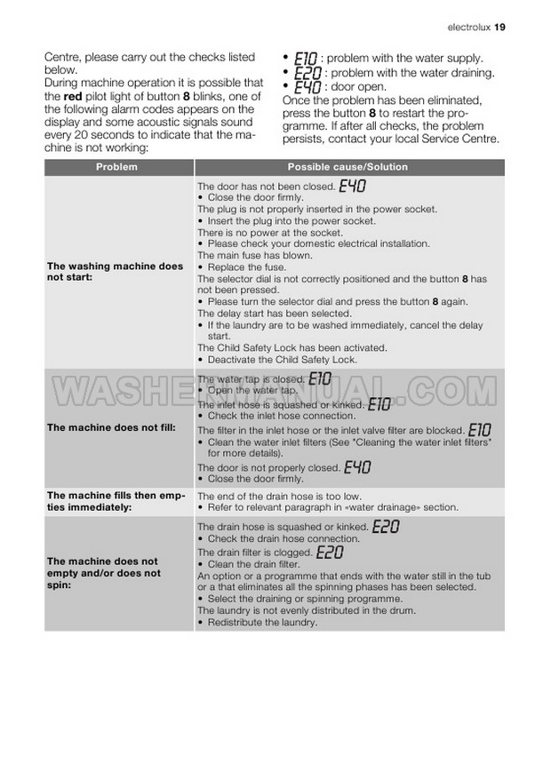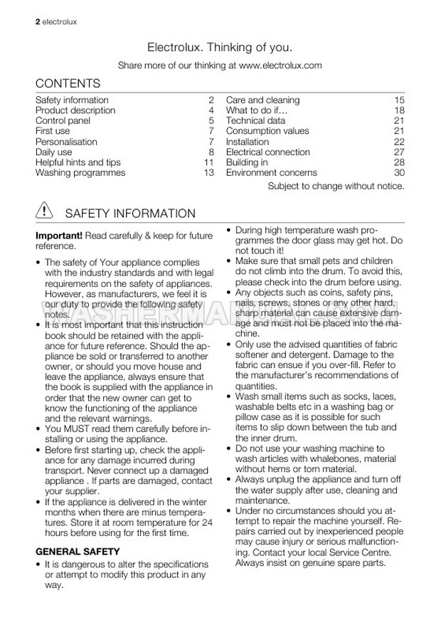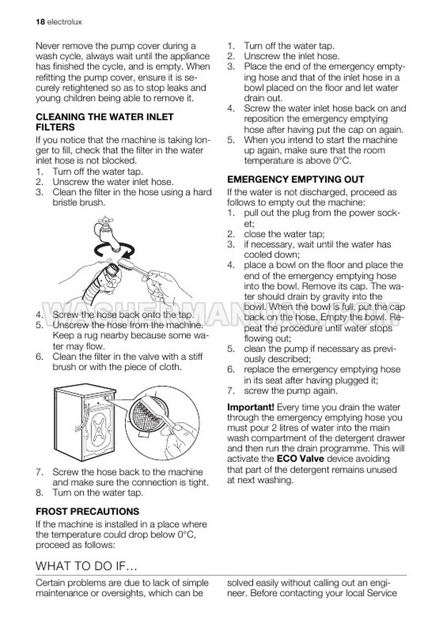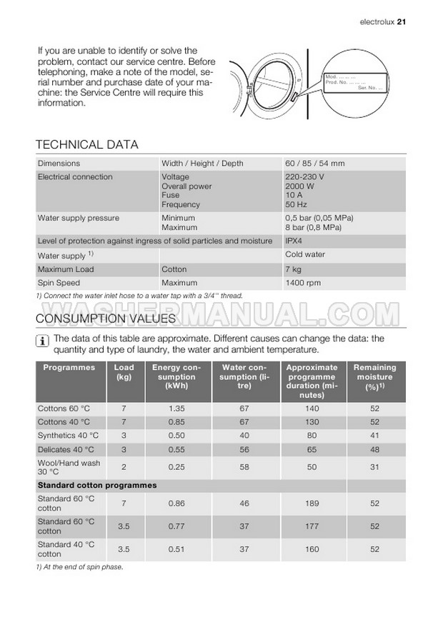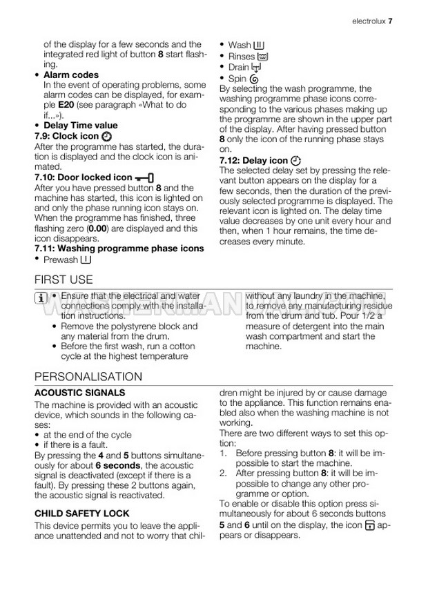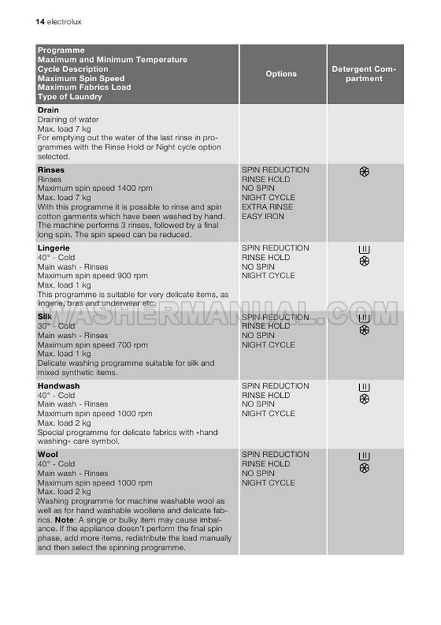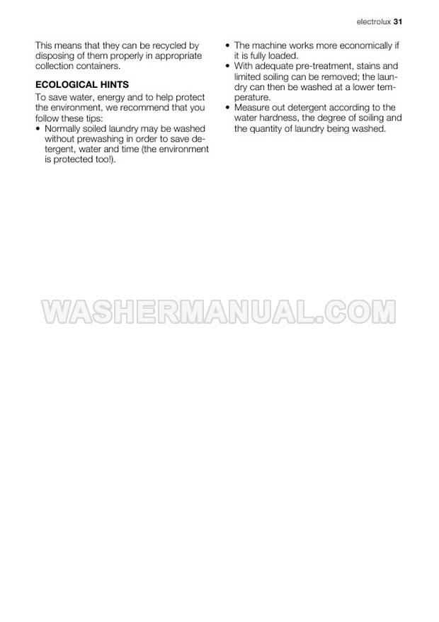Washer Manual Electrolux EWG147540W User Manual Electrolux EWG147540W User Manual Rating 5.0 (votes: 1) Description User manual for Electrolux EWG147540W Integrated laundry machine with front load on 32 pages.
