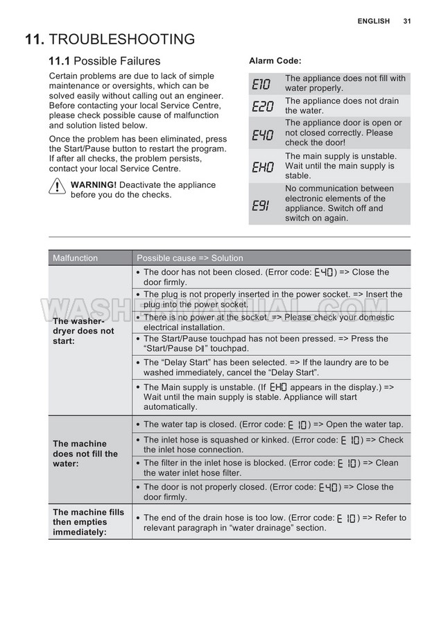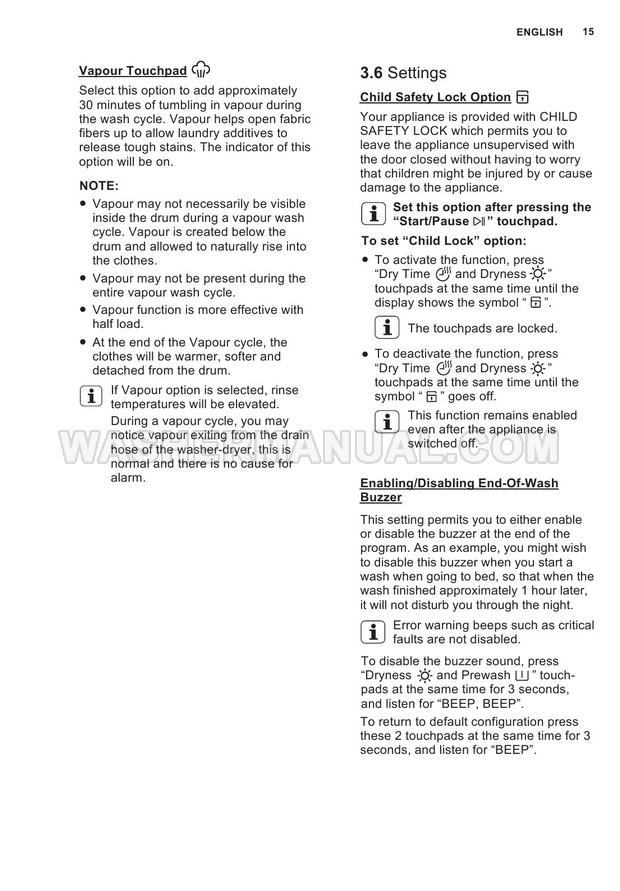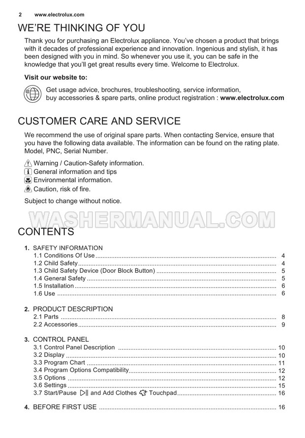 Washer Manual Electrolux EWW12753 User Manual Electrolux EWW12753 User Manual Rating 5.0 (votes: 1) Description User manual for Electrolux EWW12753 Vapour Care laundry machine with front load on 40 pages.