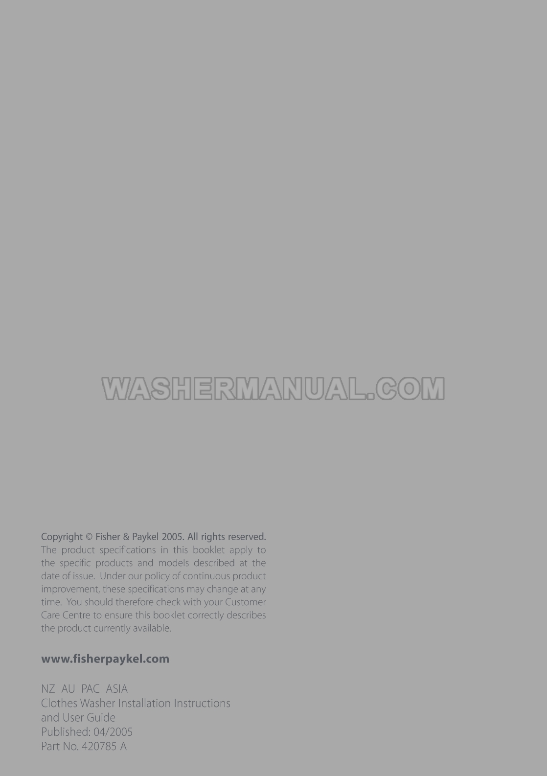 Installation instructions and user guide for Fisher & Paykel IW512 Series 12 5.5 kg top load intuitive washing machine with 1000 rpm spin and smart controls for compact loads in smaller households on 40 pages.
