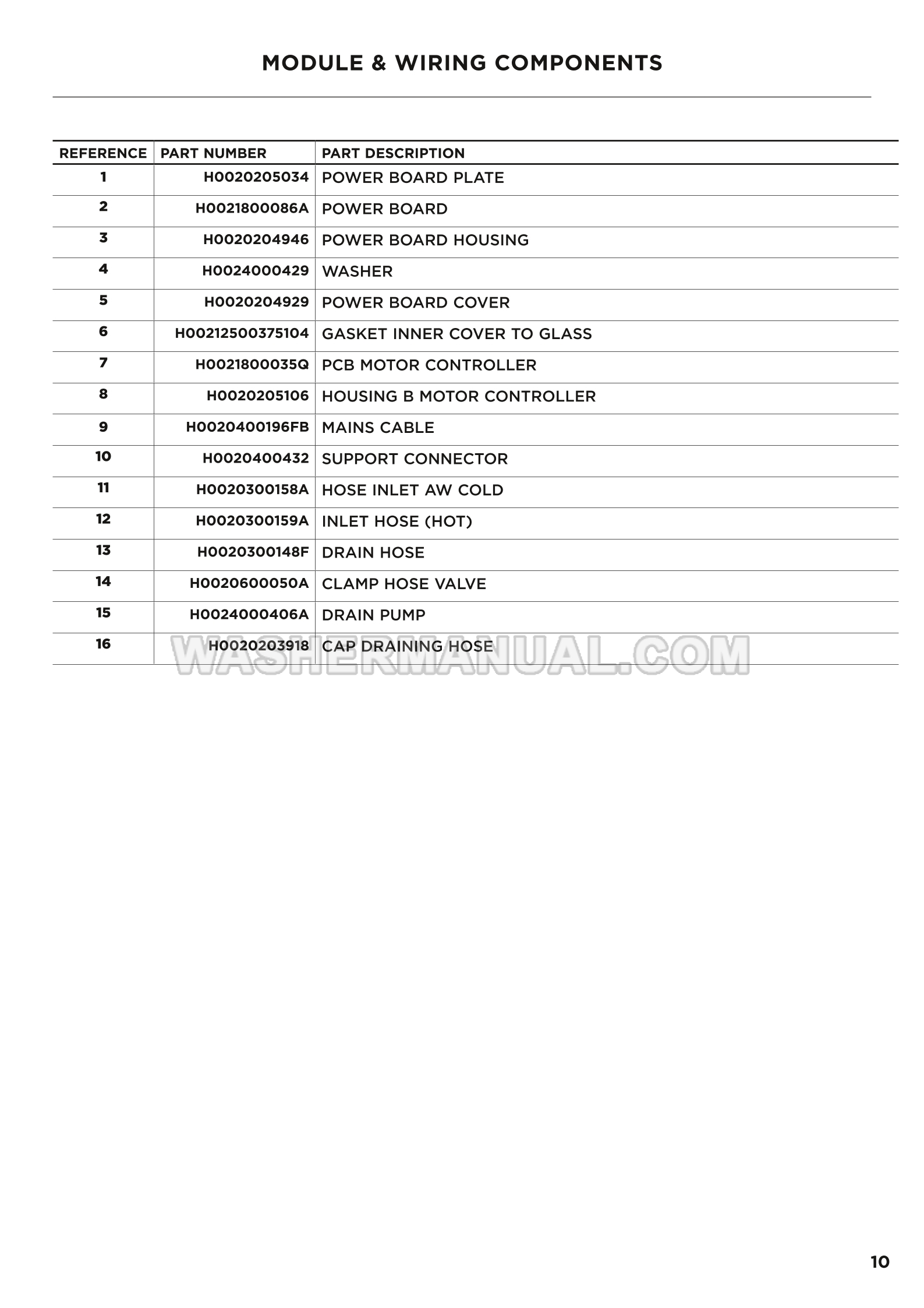 Parts manual for Fisher & Paykel WH1260P1 Series 7 family-size front-load washer with 12kg capacity, 1400 rpm maximum spin, cushioned drum for gentle fabric care, hot and cold water inlet choice, and timed liquid detergent dispensing laundry machine with front load on 16 pages.