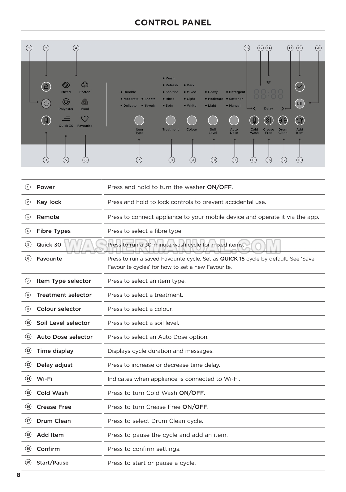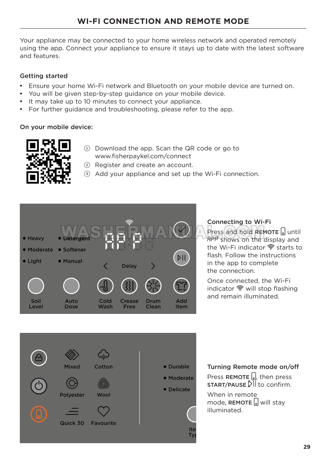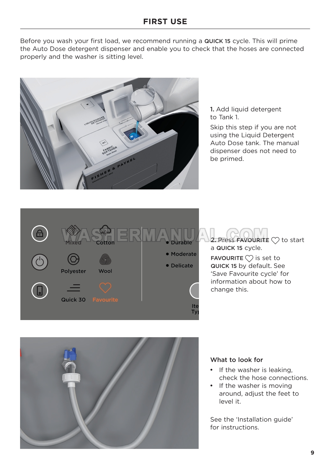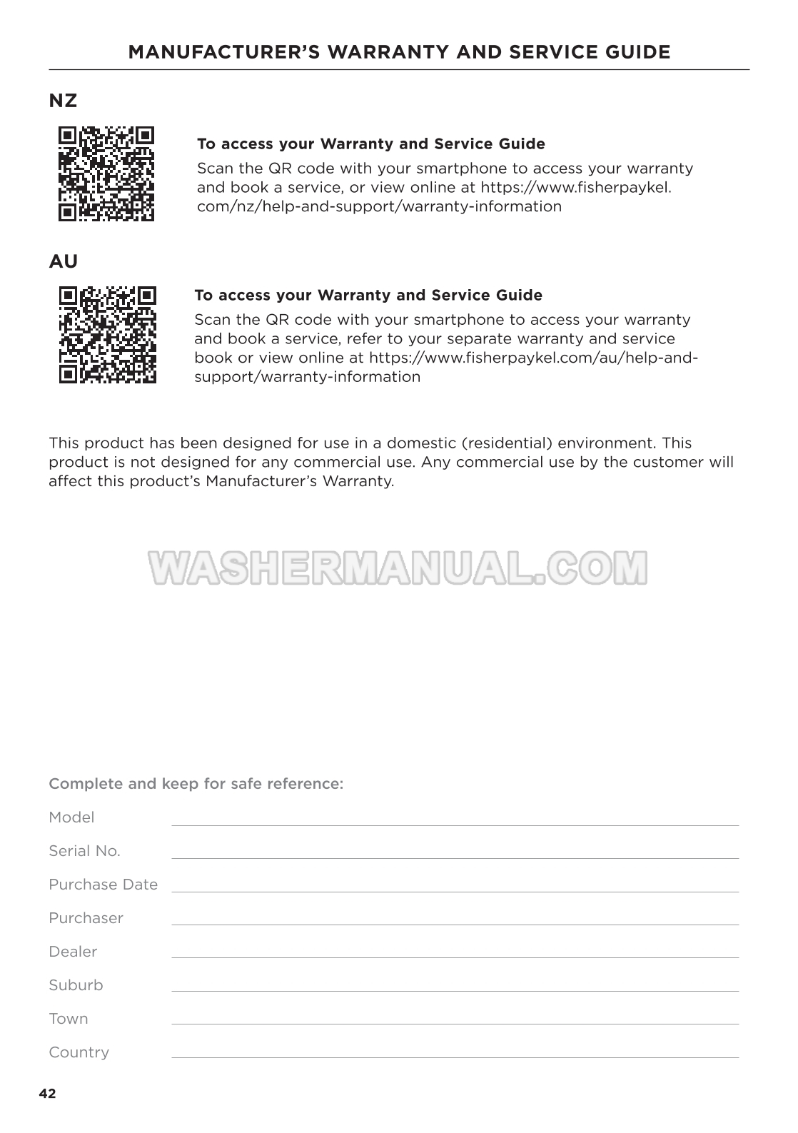 User guide for Fisher & Paykel WH9060J5 Series 5 versatile 9kg front load washer with 1400 rpm spin speed, sanitise cycle eliminating 99.9% bacteria, 5 star energy rating and woolmark black certified wool cycle laundry machine on 43 pages.