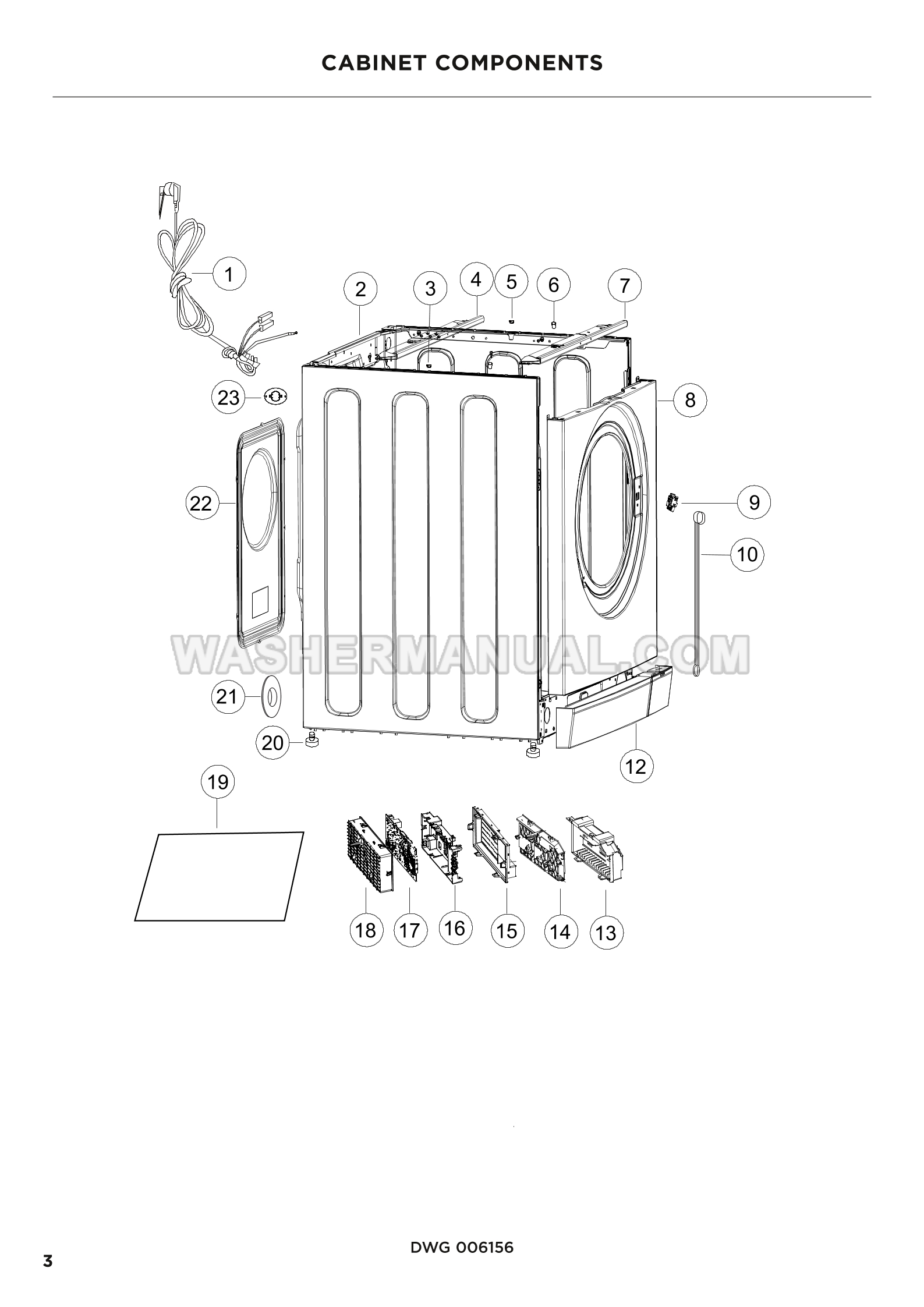 Parts manual for Fisher & Paykel WH9060P4 Series 7 9 kg front load washer with 1400 rpm spin offering 13 fabric care cycles including steam refresh, quick 30 and bulky plus options laundry machine on 16 pages.