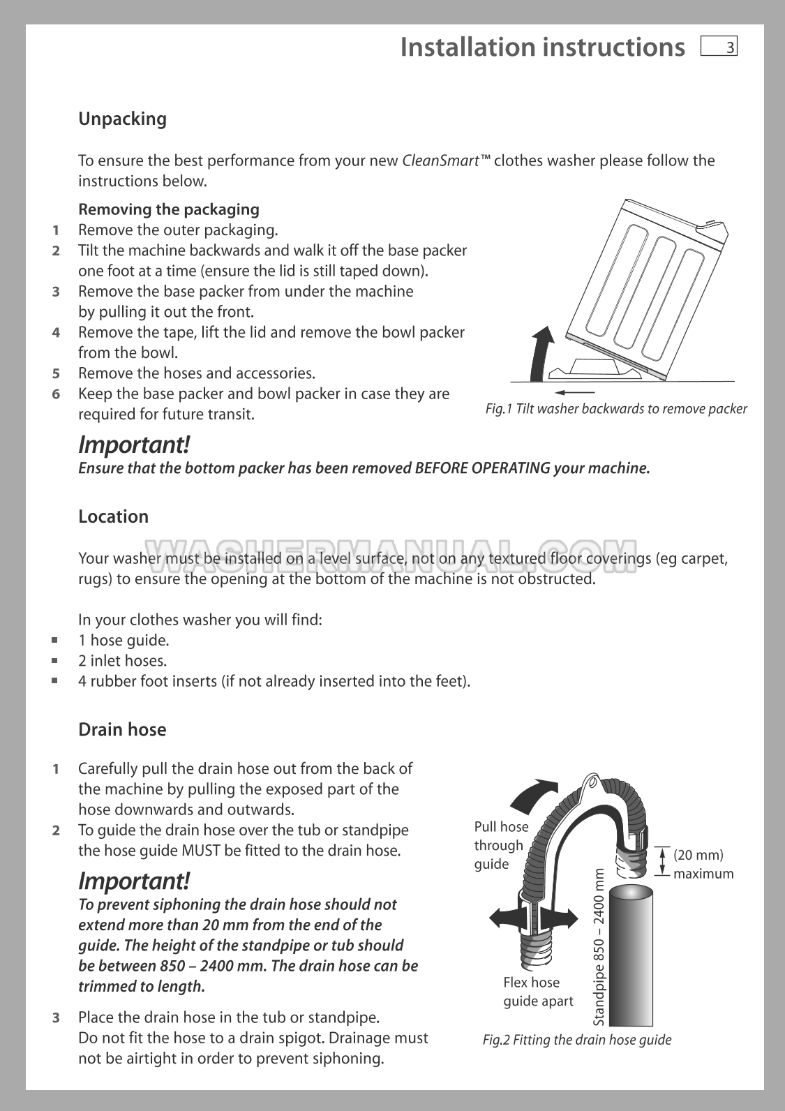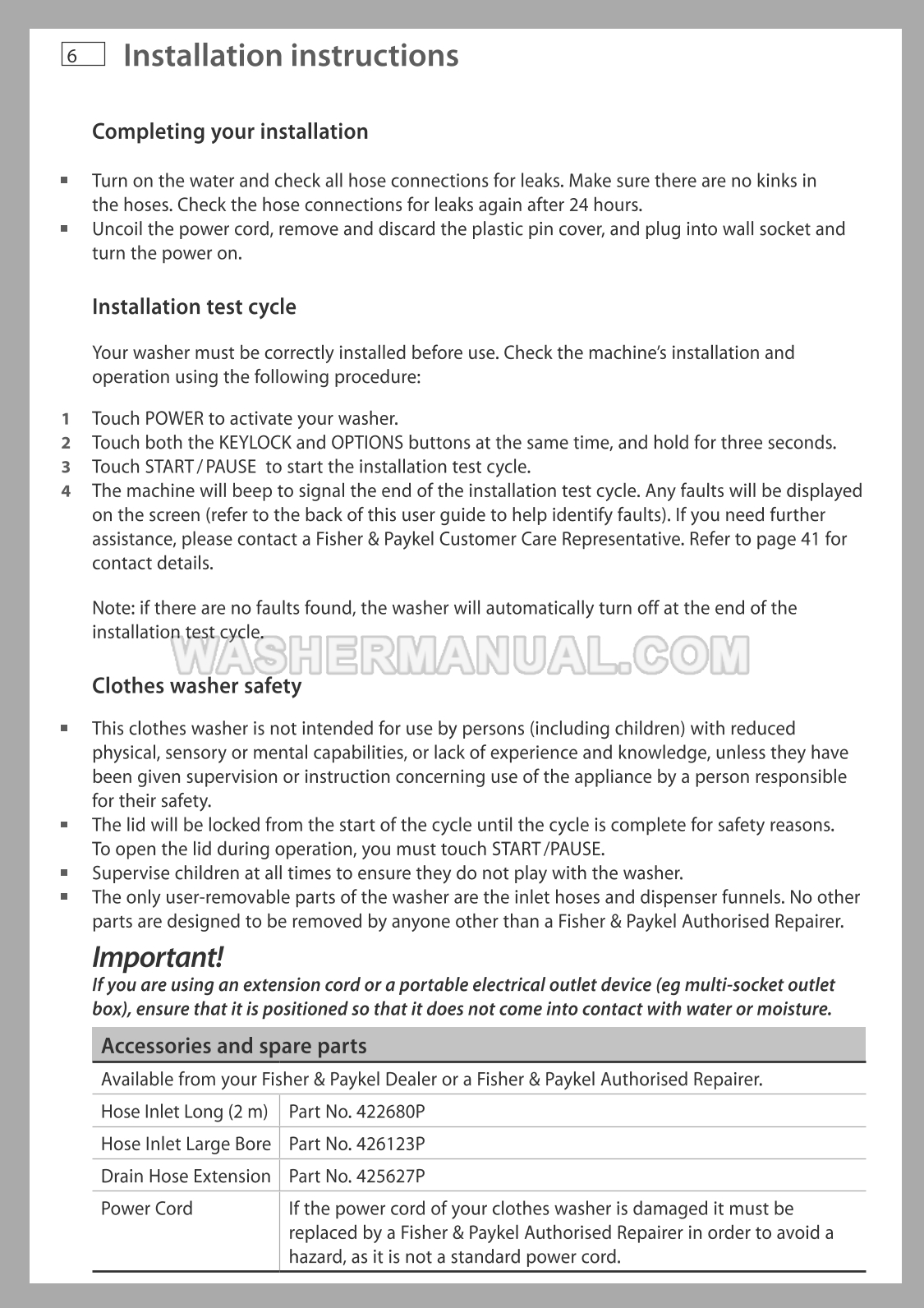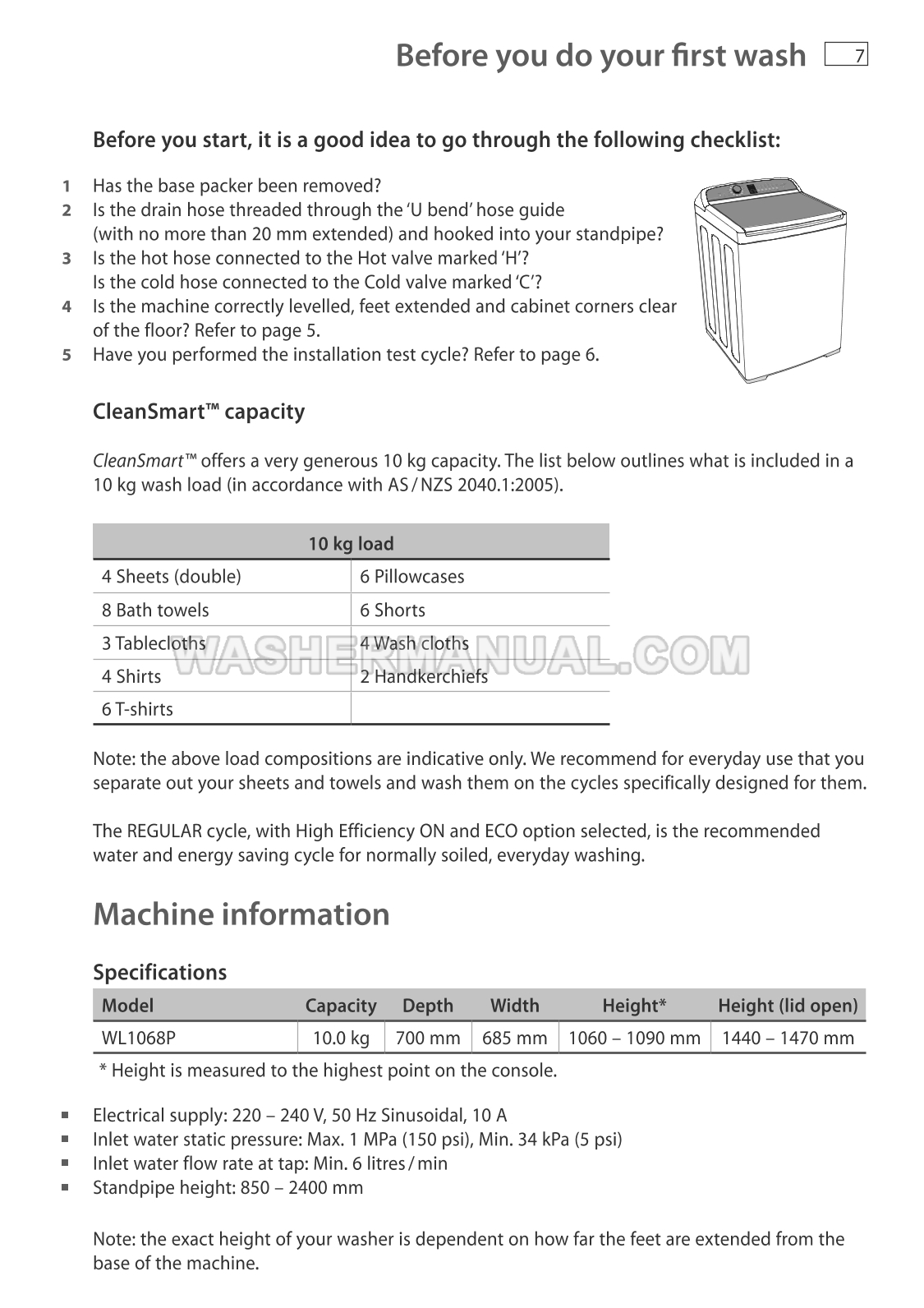 Fisher & Paykel WL1068P1 Installation instructions and User guide
