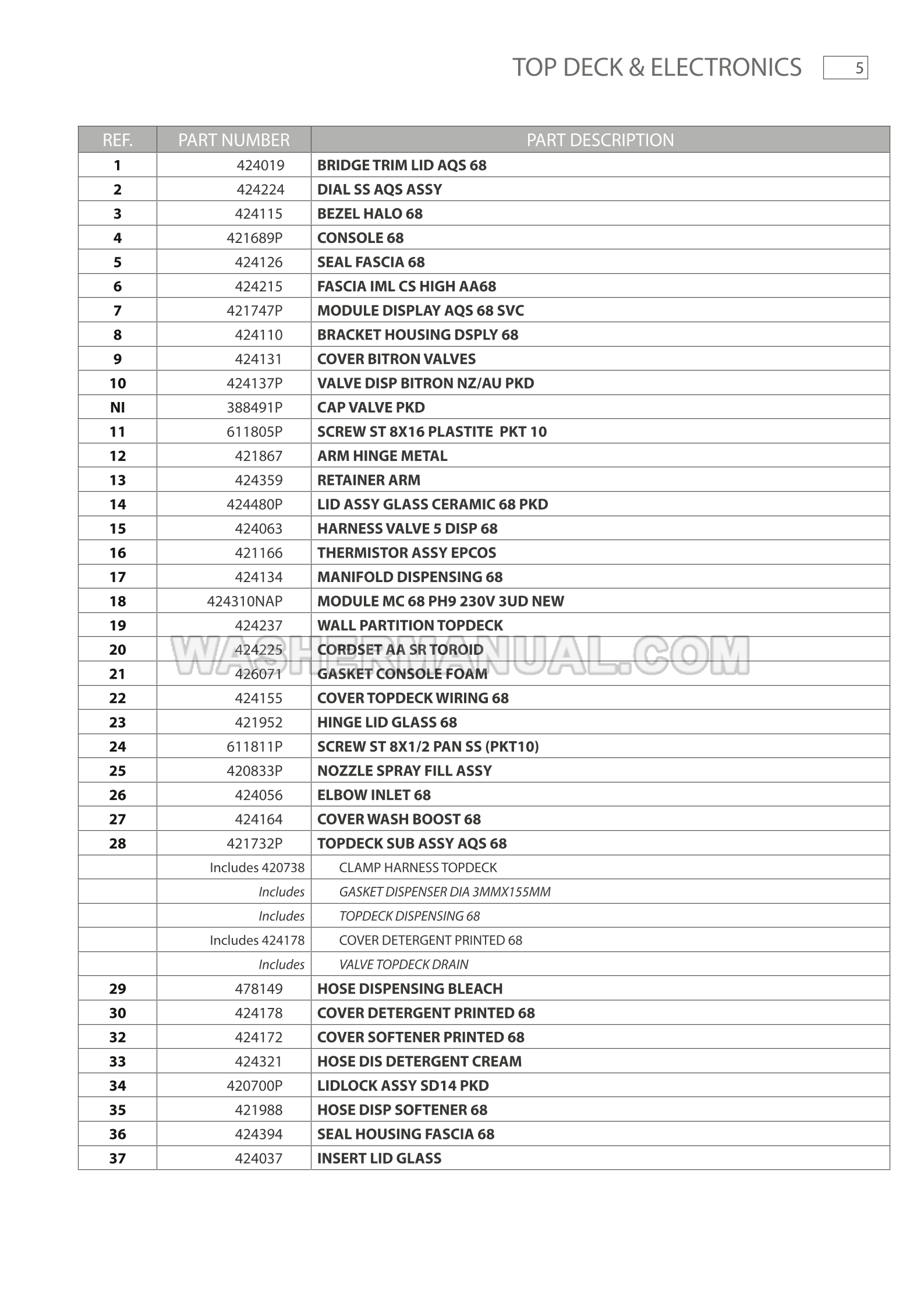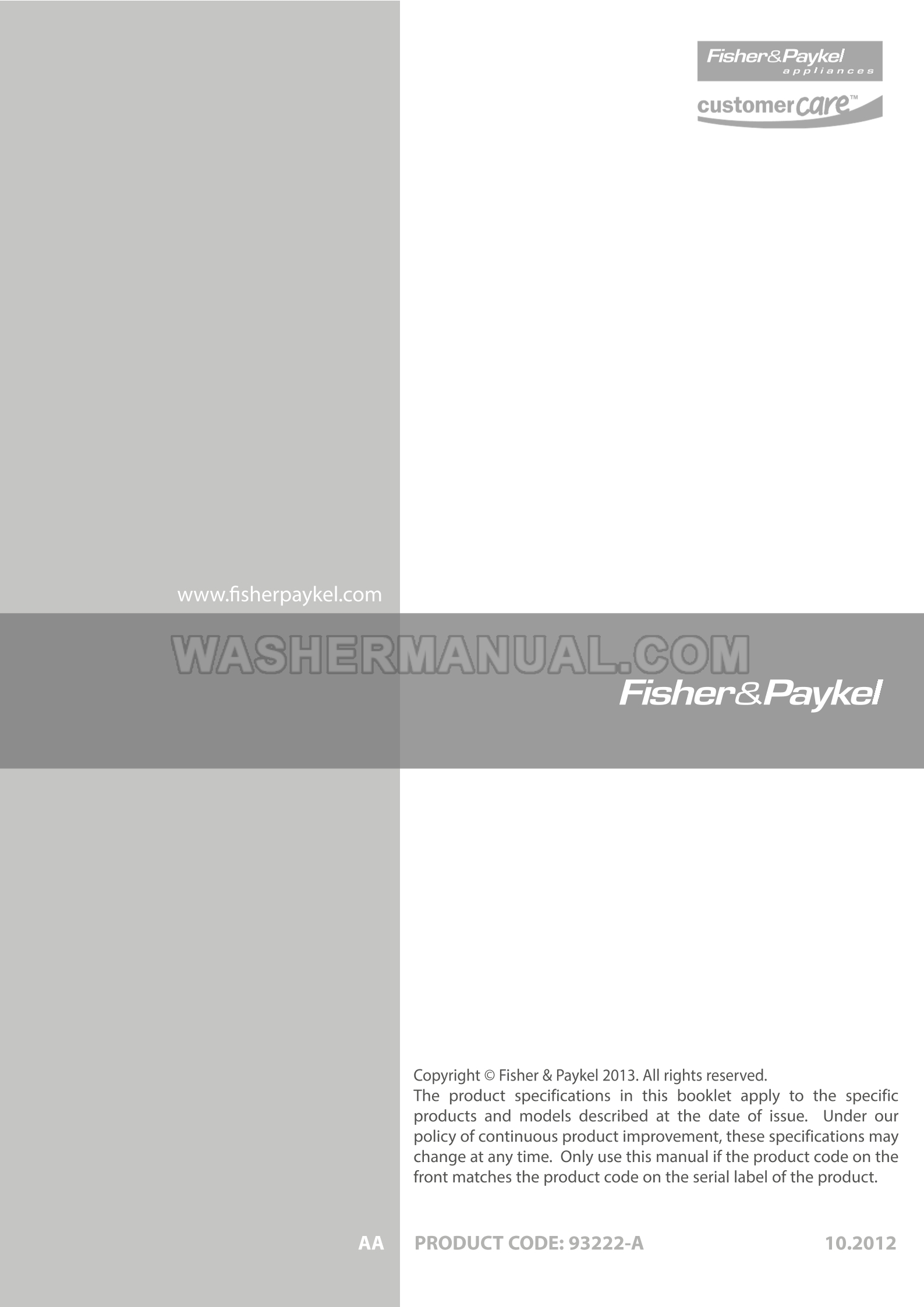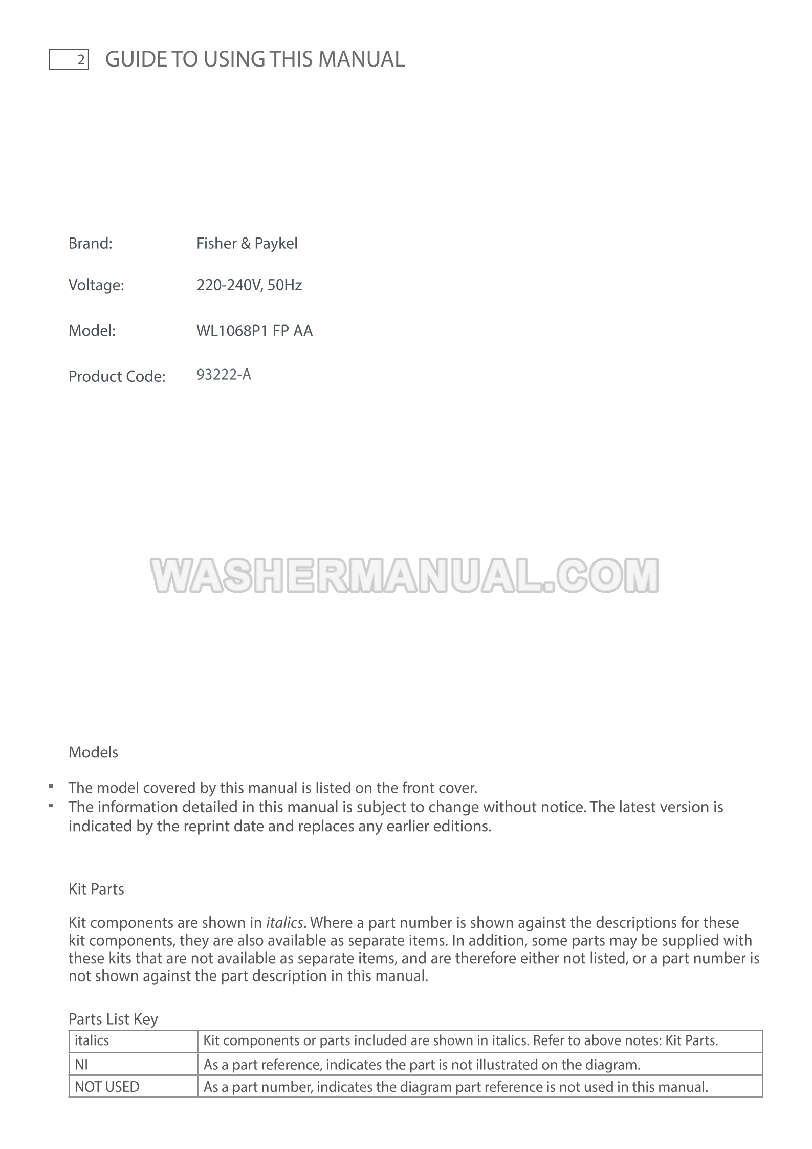 Fisher & Paykel WL1068P1 Parts Manual