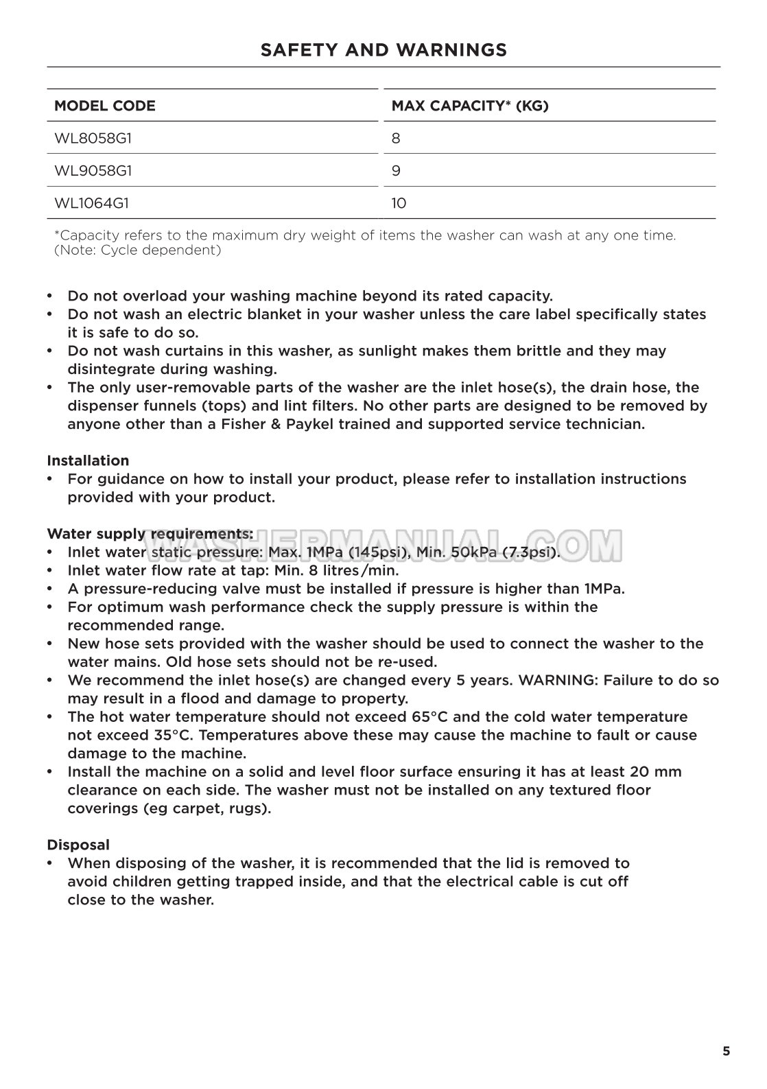 Fisher & Paykel WL9058G1 User Guide