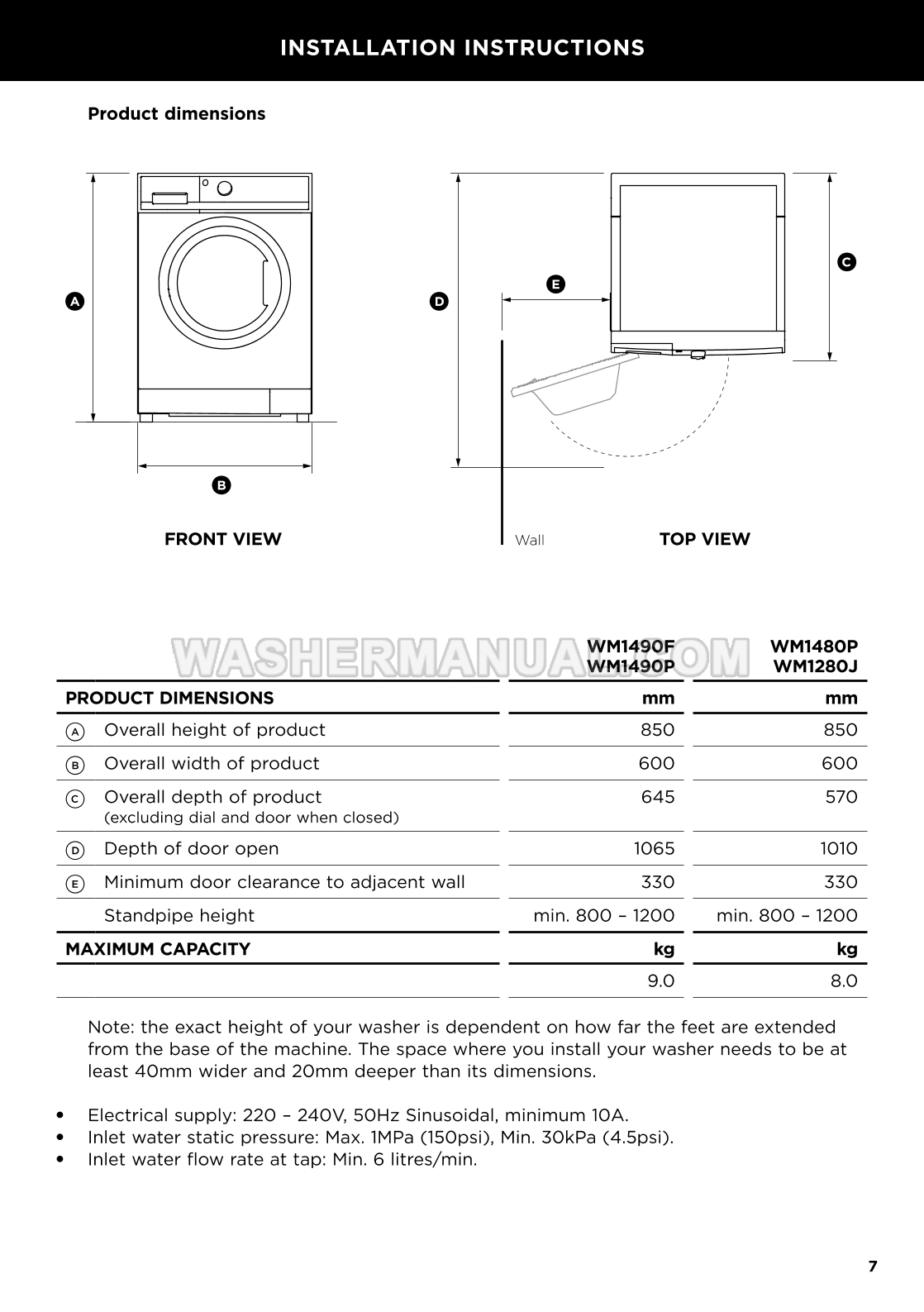 Fisher & Paykel WM1490F Installation & User Guide