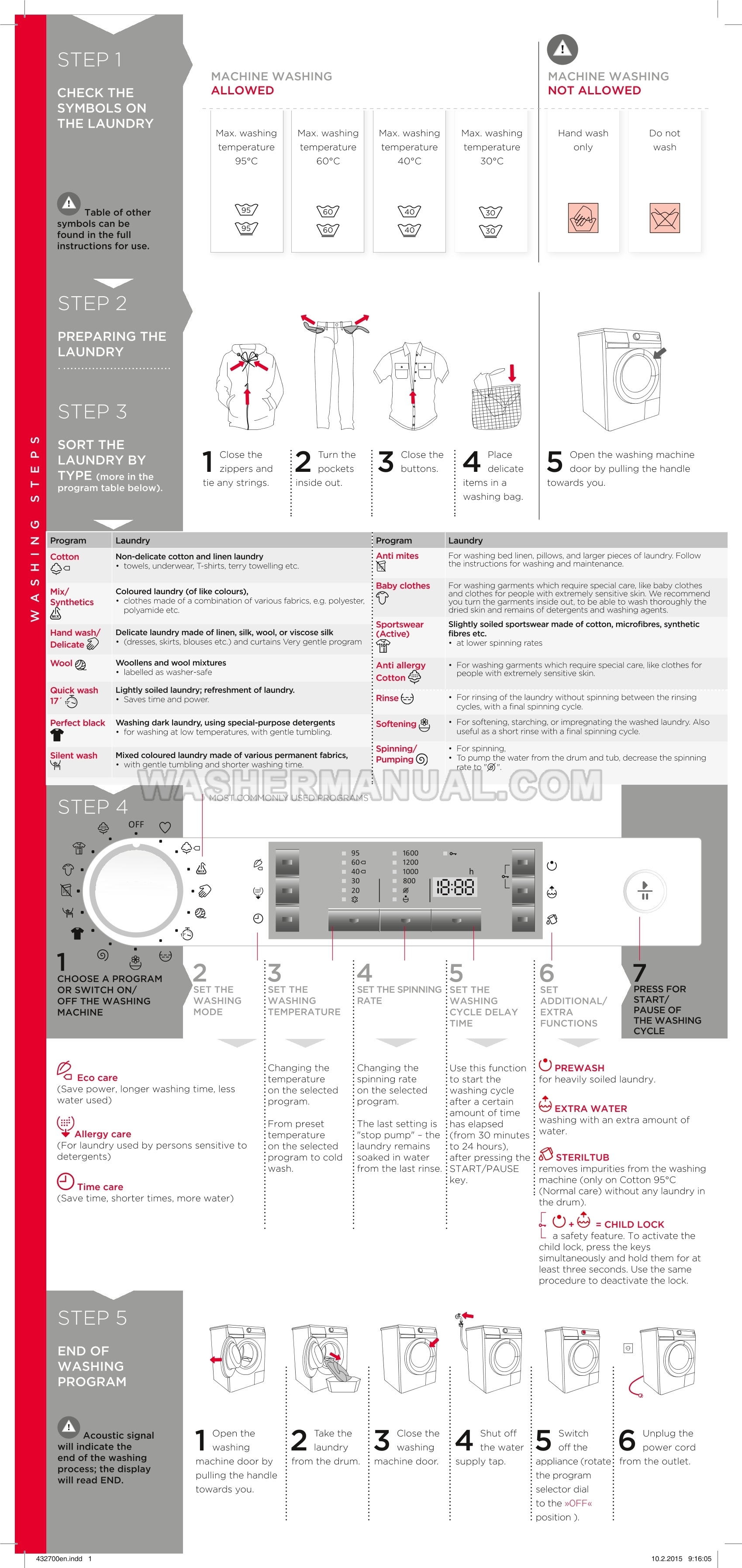 Gorenje W8543C Quick Instructions