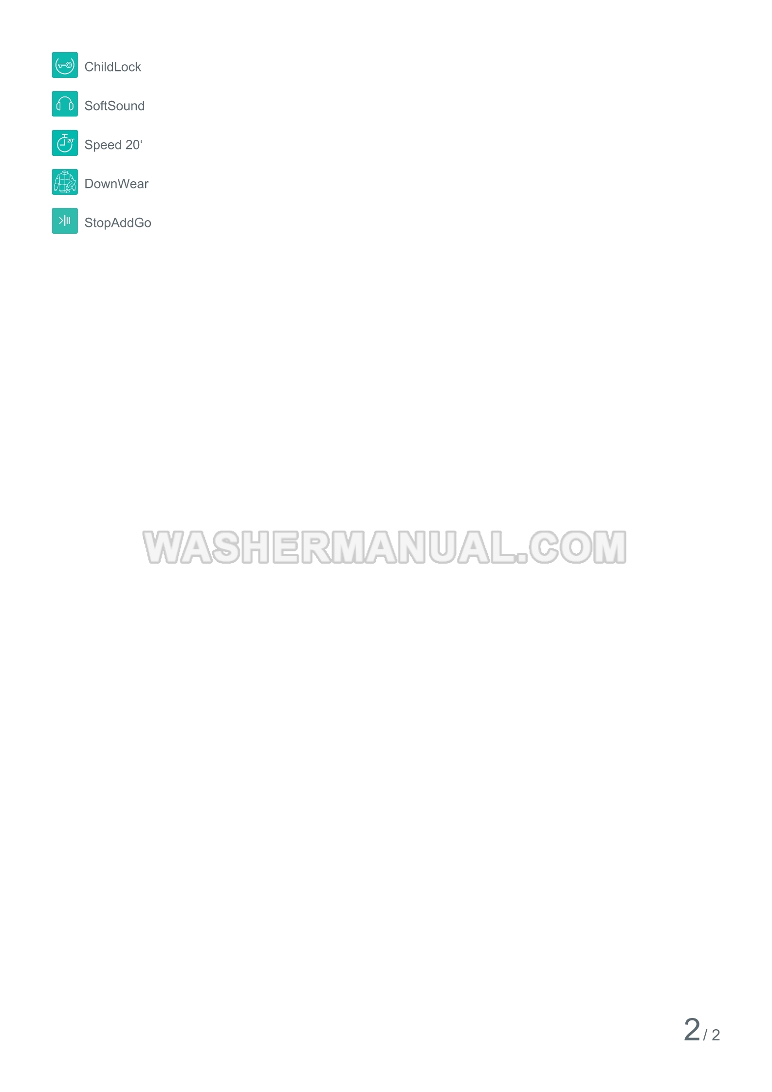 Specifications sheet for Gorenje WE723 efficient front-load washer with 7 kg capacity, 54 l drum and LED display featuring EcoCare and TimeCare modes for quiet, thorough cleaning laundry machine with front load on 2 pages.