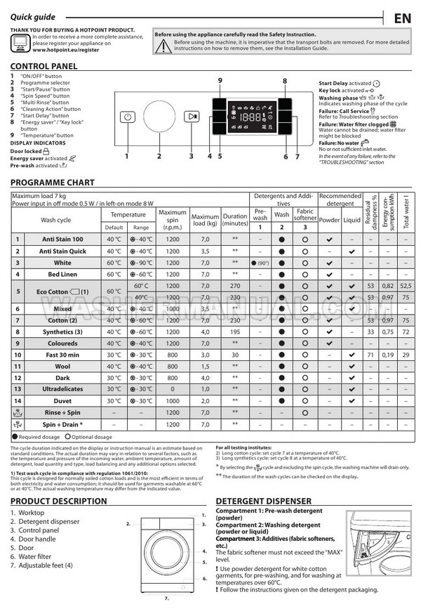Washer Manual Hotpoint BI WMHG 71284 User Manual Hotpoint BI WMHG 71284 User Manual Rating 5.0 (votes: 2) Description User manual for Hotpoint BI WMHG 71284 Integrated laundry machine with front load on 14 pages.