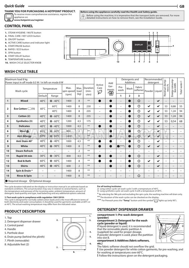Washer Manual Hotpoint NM11 845 WC Quick Guide Hotpoint NM11 845 WC Quick Guide Rating 5.0 (votes: 1) Description Quick guide for Hotpoint NM11 845 WC ActiveCare laundry machine with front load on 4 pages.