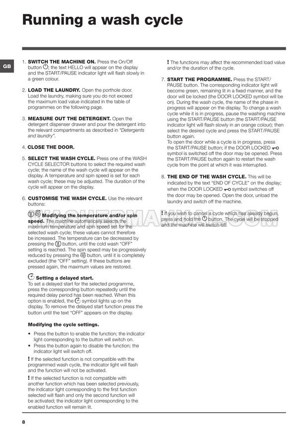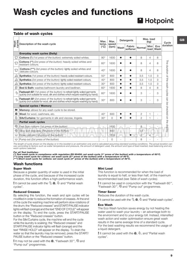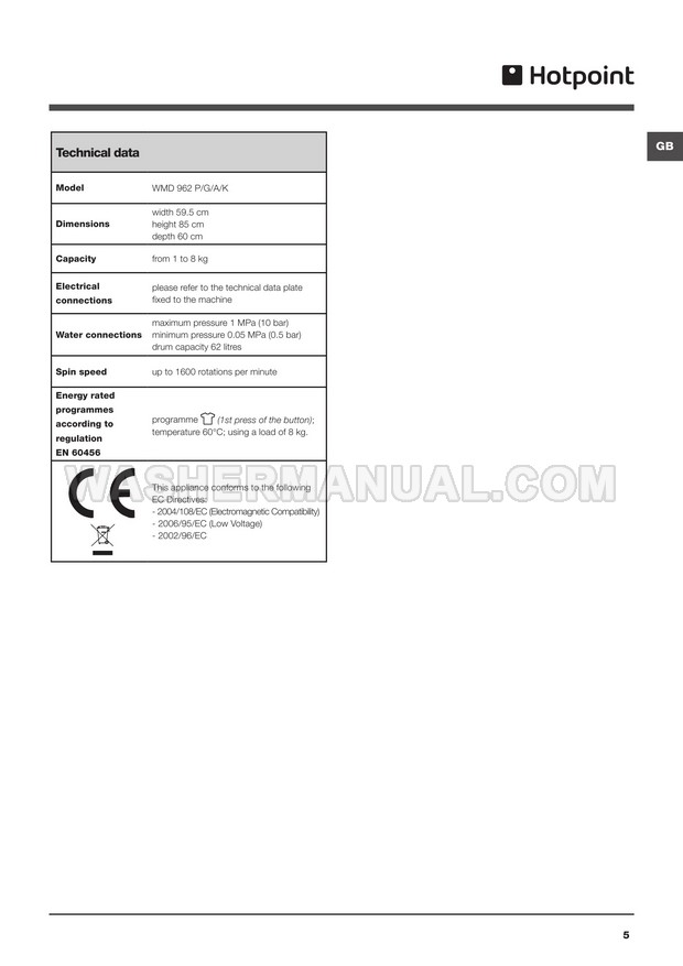 Washer Manual Hotpoint WMD 962 Instructions for Use Hotpoint WMD 962 Instructions for Use Rating 5.0 (votes: 1) Description Instructions for use for Hotpoint WMD 962 Ultima laundry machine with front load on 16 pages.