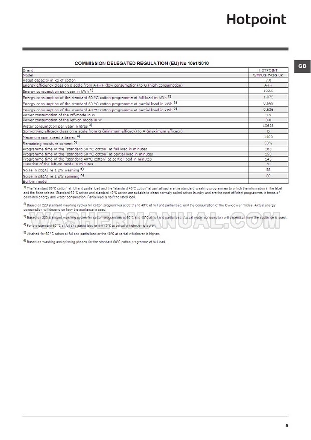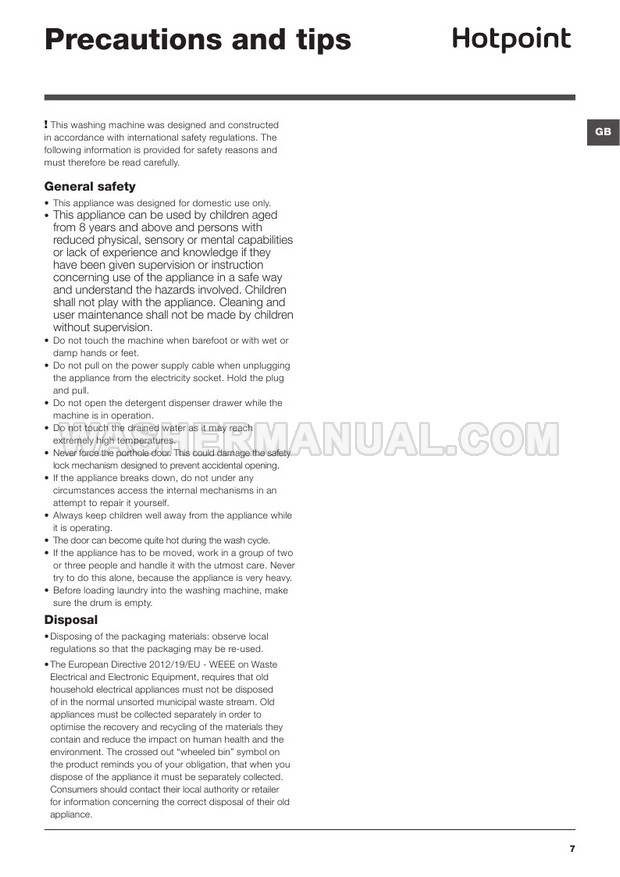 Hotpoint WMFUG 742G Instructions for Use