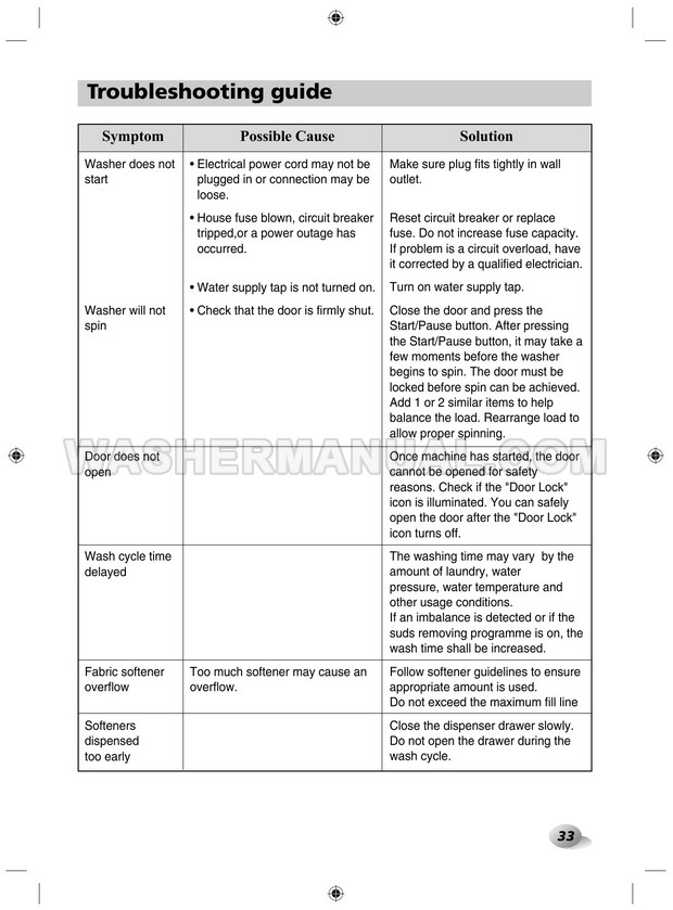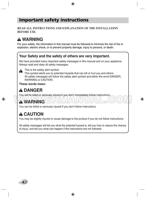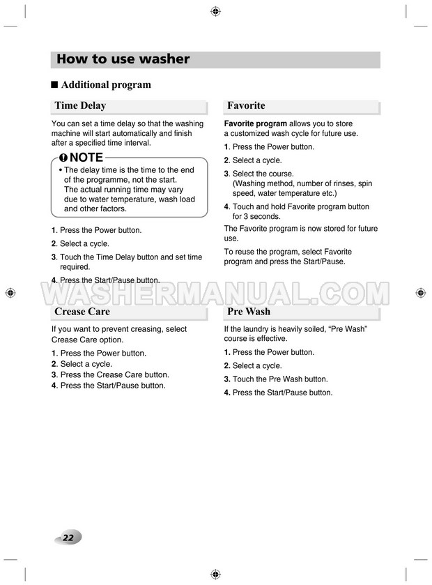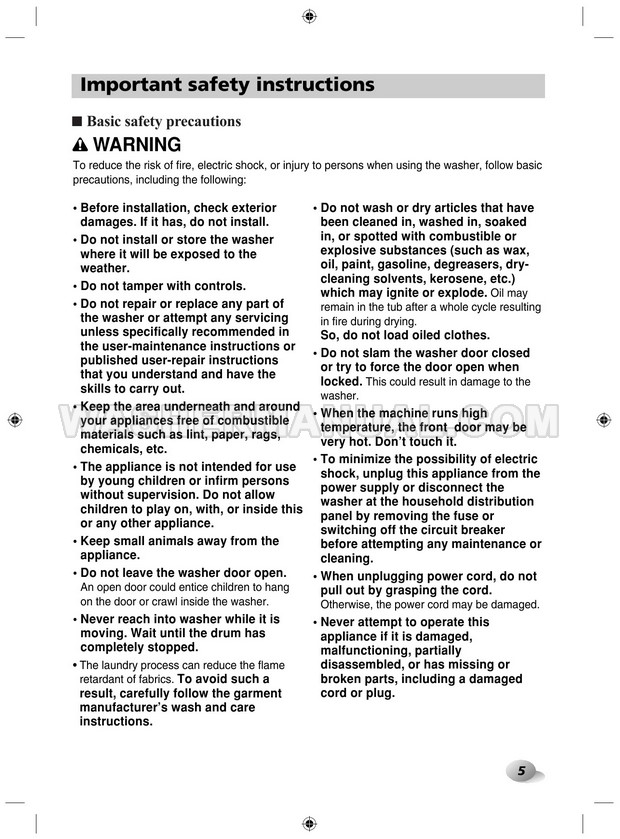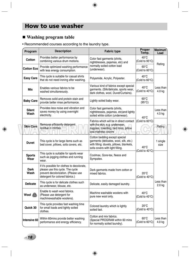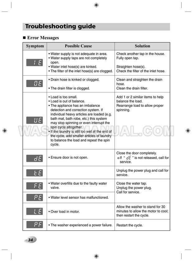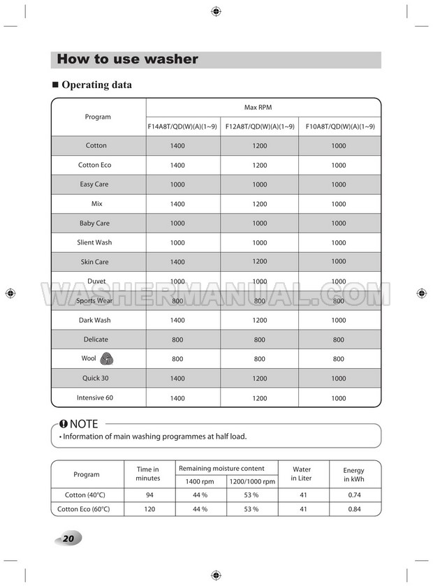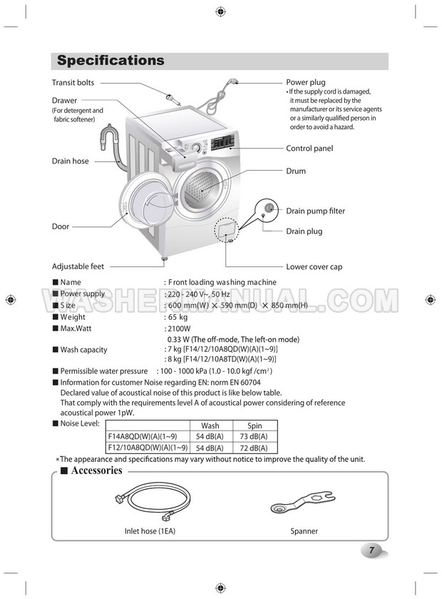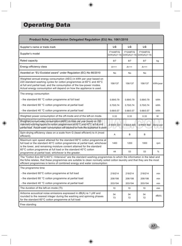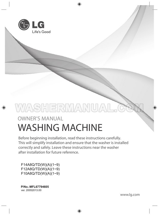 Washer Manual LG F12A8TDA5 Owner's Manual LG F12A8TDA5 Owner's Manual Rating 5.0 (votes: 1) Description Owner's manual for LG F12A8TDA5 laundry machine with front load on 40 pages.