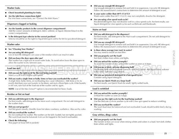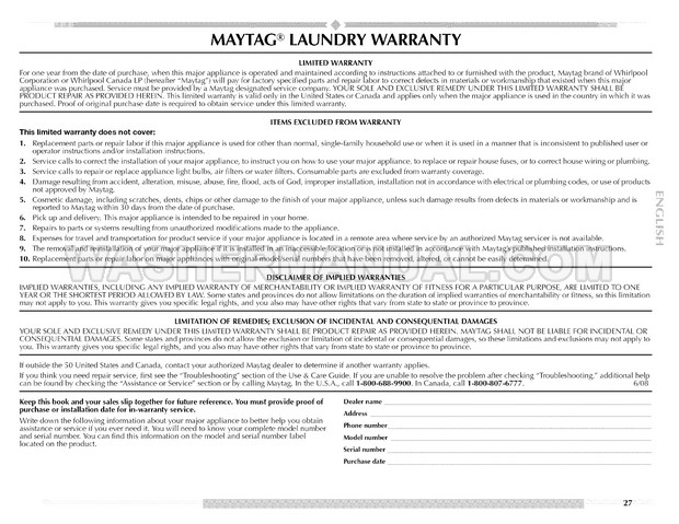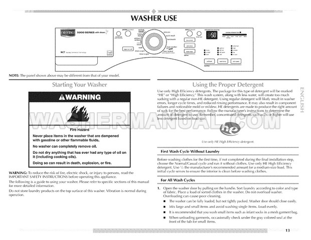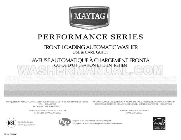 Washer Manual Maytag MHWE500VW Use & Care Guide Maytag MHWE500VW Use & Care Guide Rating 5.0 (votes: 1) Description Use & care guide for Maytag MHWE500VW 5000 Series laundry machine with front load on 27 pages.