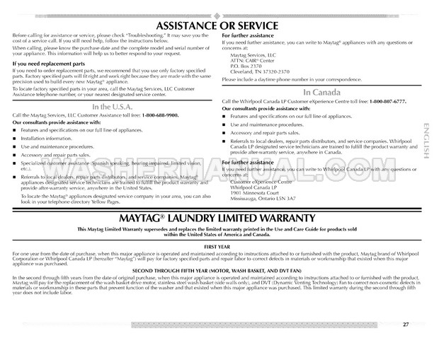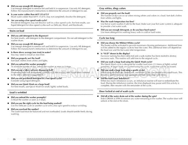 Washer Manual Maytag MHWE950WW Use & Care Guide Maytag MHWE950WW Use & Care Guide Rating 2.5 (votes: 2) Description Use & care guide for Maytag MHWE950WW 9000 Series laundry machine with front load on 28 pages.