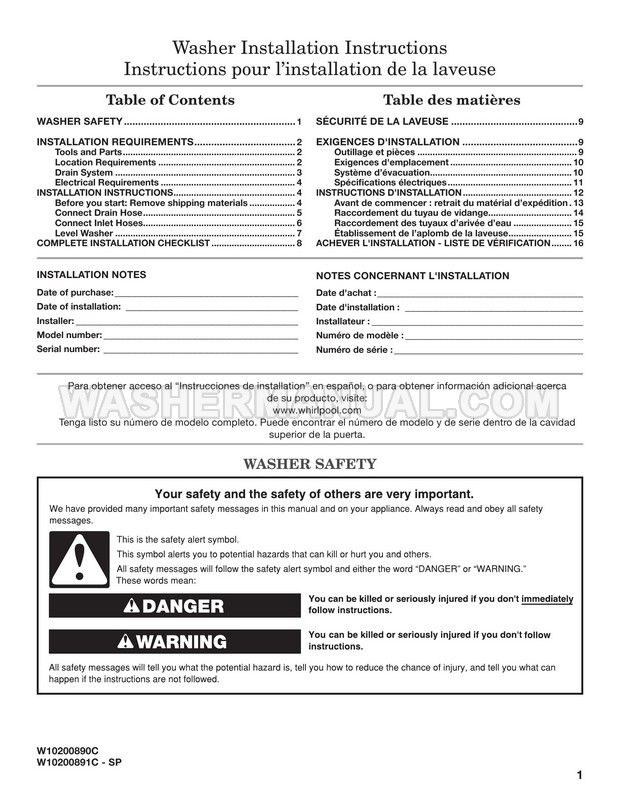 Washer Manual Maytag MVWC300VW1 Installation Instructions Maytag MVWC300VW1 Installation Instructions Rating 5.0 (votes: 1) Description Installation instructions for Maytag MVWC300VW1 laundry machine with top load on 8 pages.